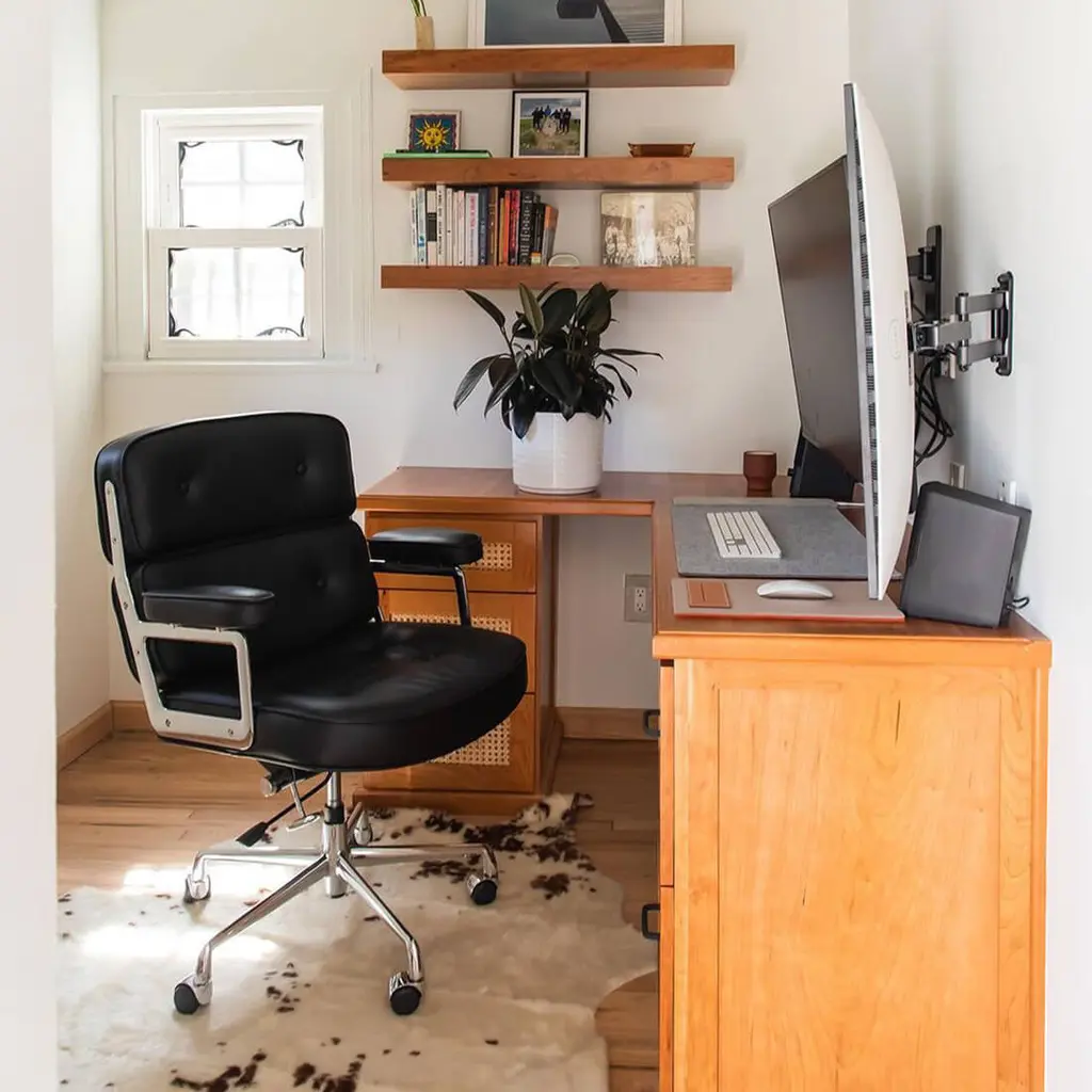 Also known as the Time-Life Chair, this iconic piece was originally created for the executive floors of New York City's Time-Life Building. The generously sized Executive Chair (1960) tilts, swivels, and has a height-adjustable seat with thick, plush cushions.
