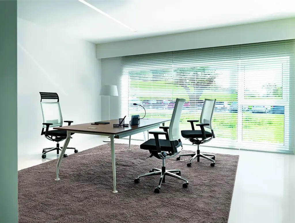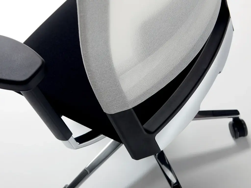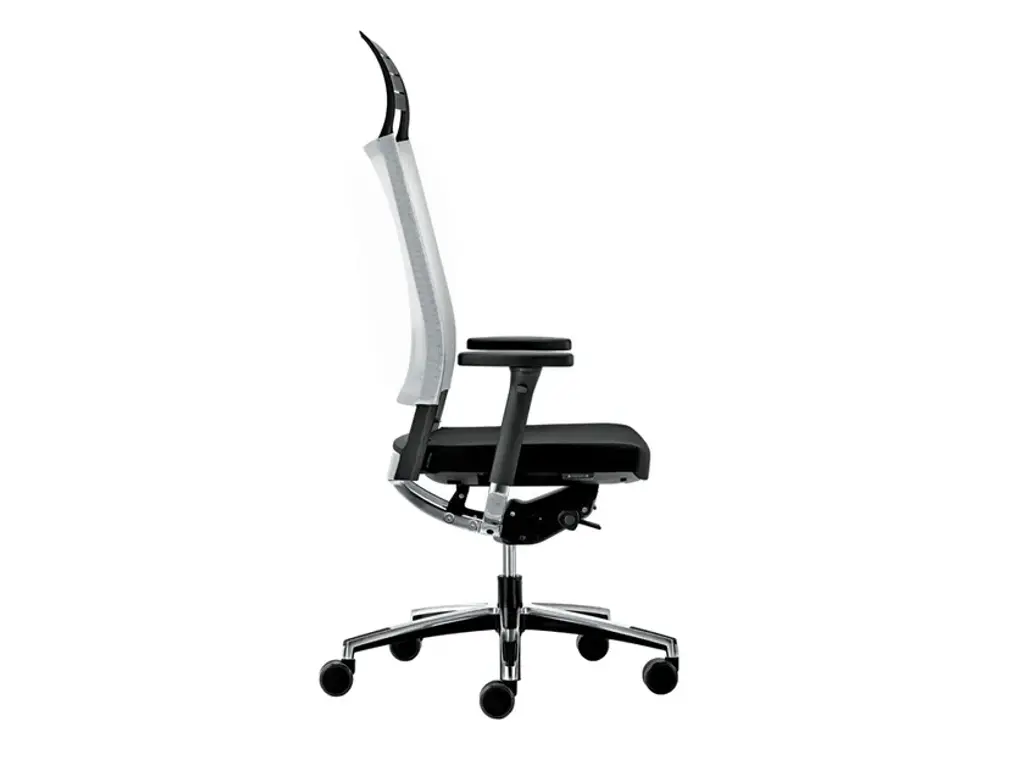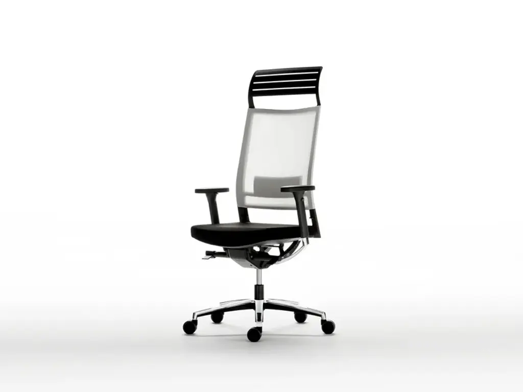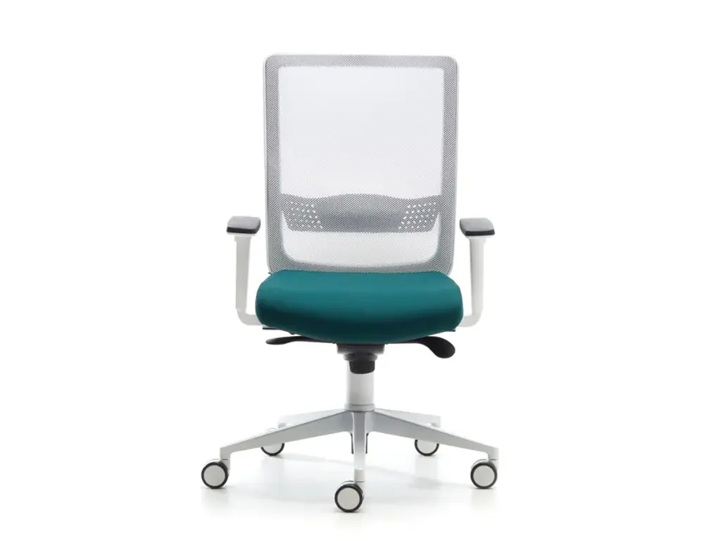 Expo 15 is a medium mesh back armchair with polypropylene headrest, tilt and adjustable lumbar support, swivel height adjustable upholstered seat , height adjustable aluminium armrest with pivoting, width and depth adjustable black polyurethane arm pad, aluminium base, rubber castors Ø65.Mesh backrest. Padded seat covered in leather or fabric.CERTIFICATIONSD.L. 81/80 / EN 1335