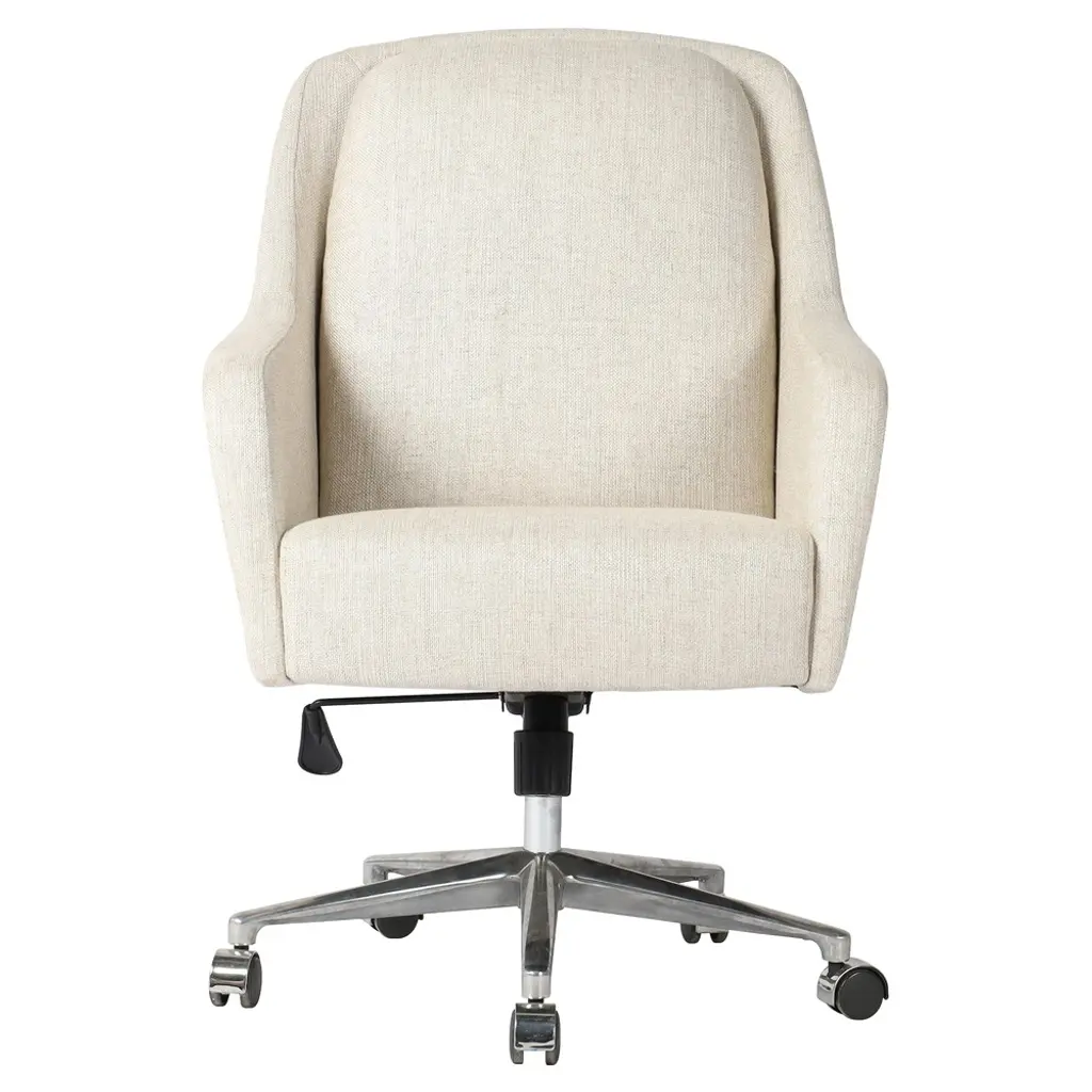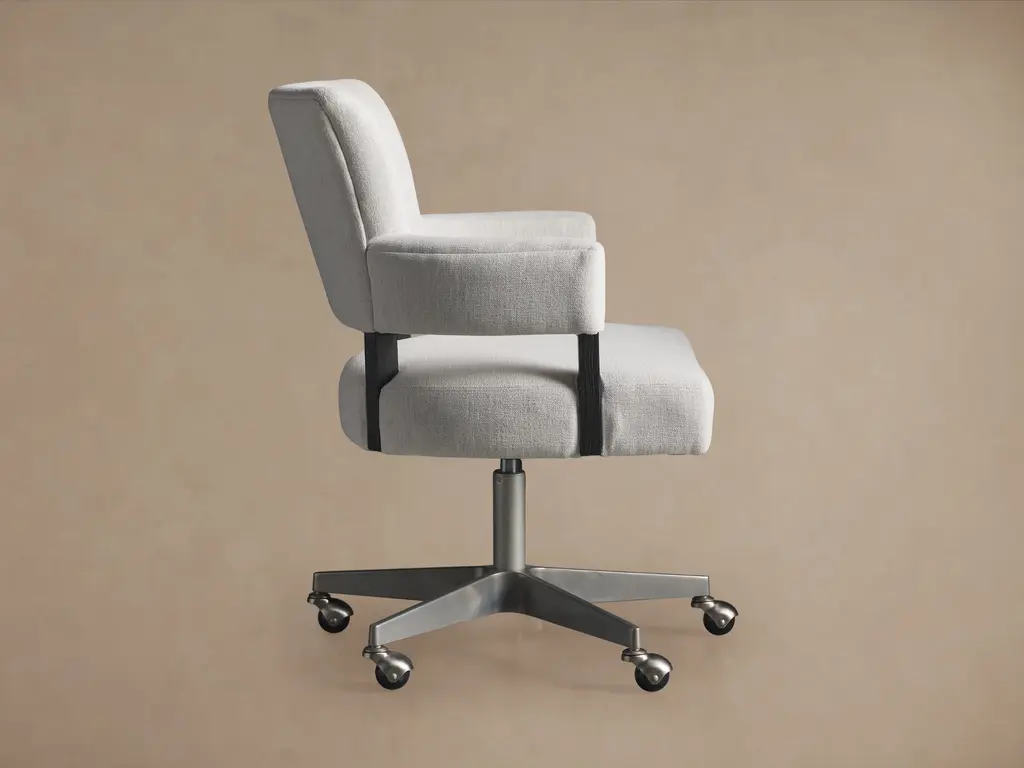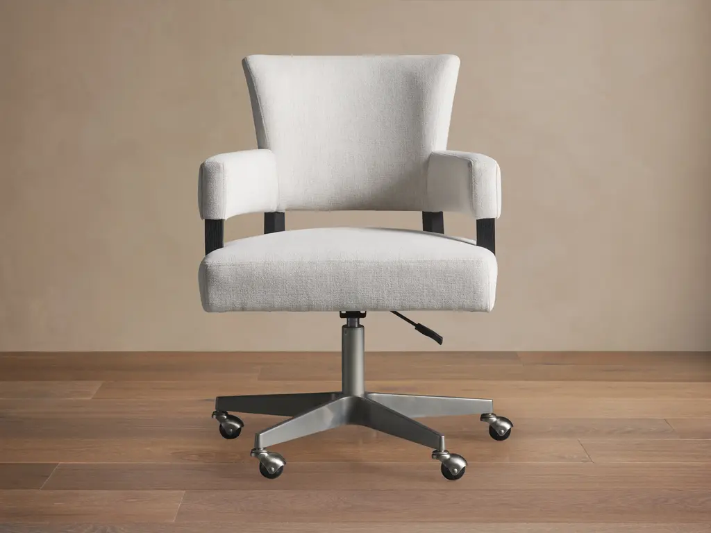 The transitional style of our Fallyn Desk Chair is versatile enough to complement any office space. Expertly fitted upholstery in Crypton® Performance Fabric remains soft and comfortable through long work hours while standing up to everyday wear and tear, and a metal base with brushed nickel finish swivels smoothly for effortless positioning.