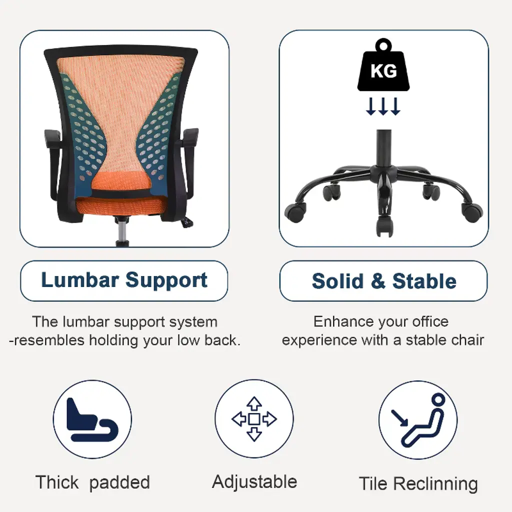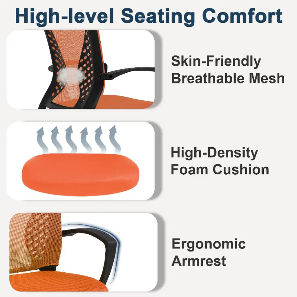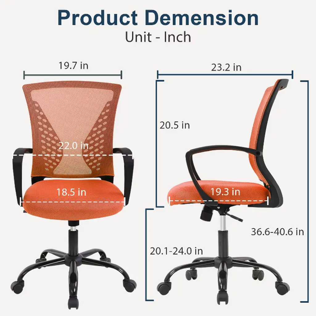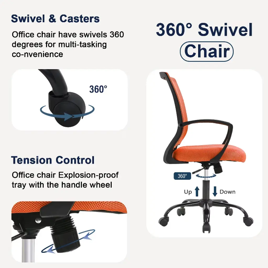 Fdw Office Chair With Breathable Mesh Lumbar Support Armrests And Adjustable Swivel Desk Chair Computer Chair For Home And Office, Orange