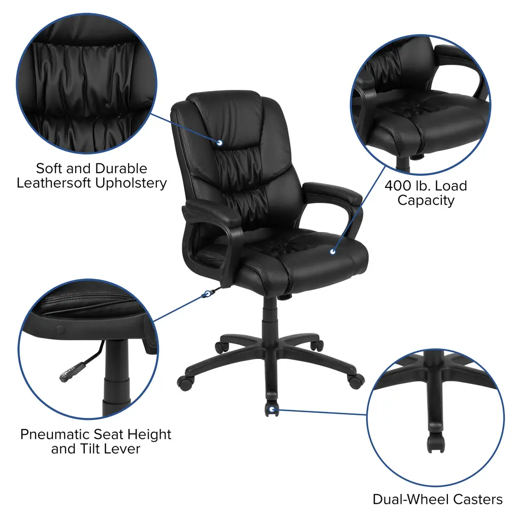 Flash Fundamentals Big & Tall 400 Lb. Rated Leathersoft Swivel Office Chair With Padded Arms