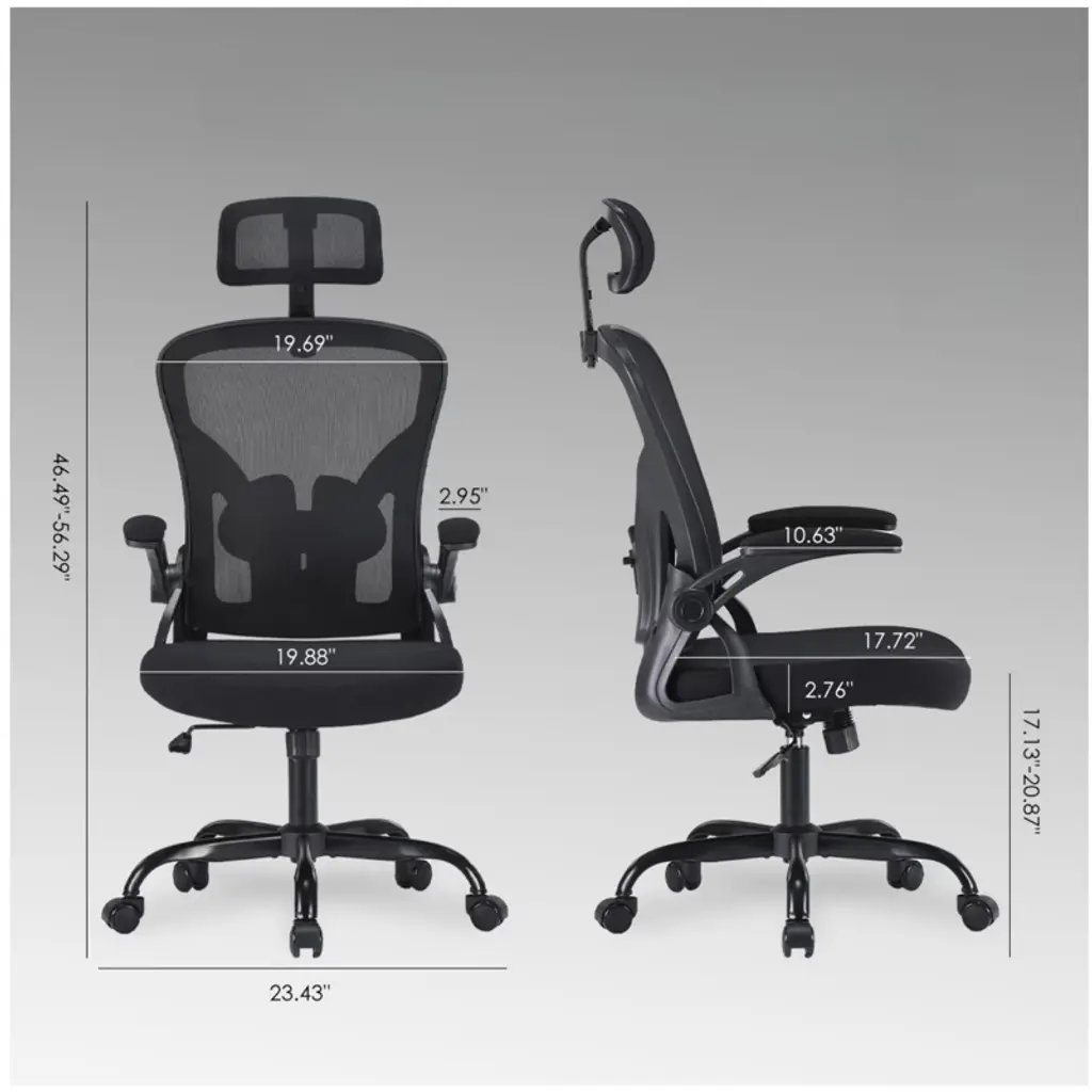 Fontoi Task And Office Chairs, Ergonomic Chair With Flip-up Armrests And Adjustable Lumbar Support For Home Office, Black, 23.43"*56.69"*23.43"