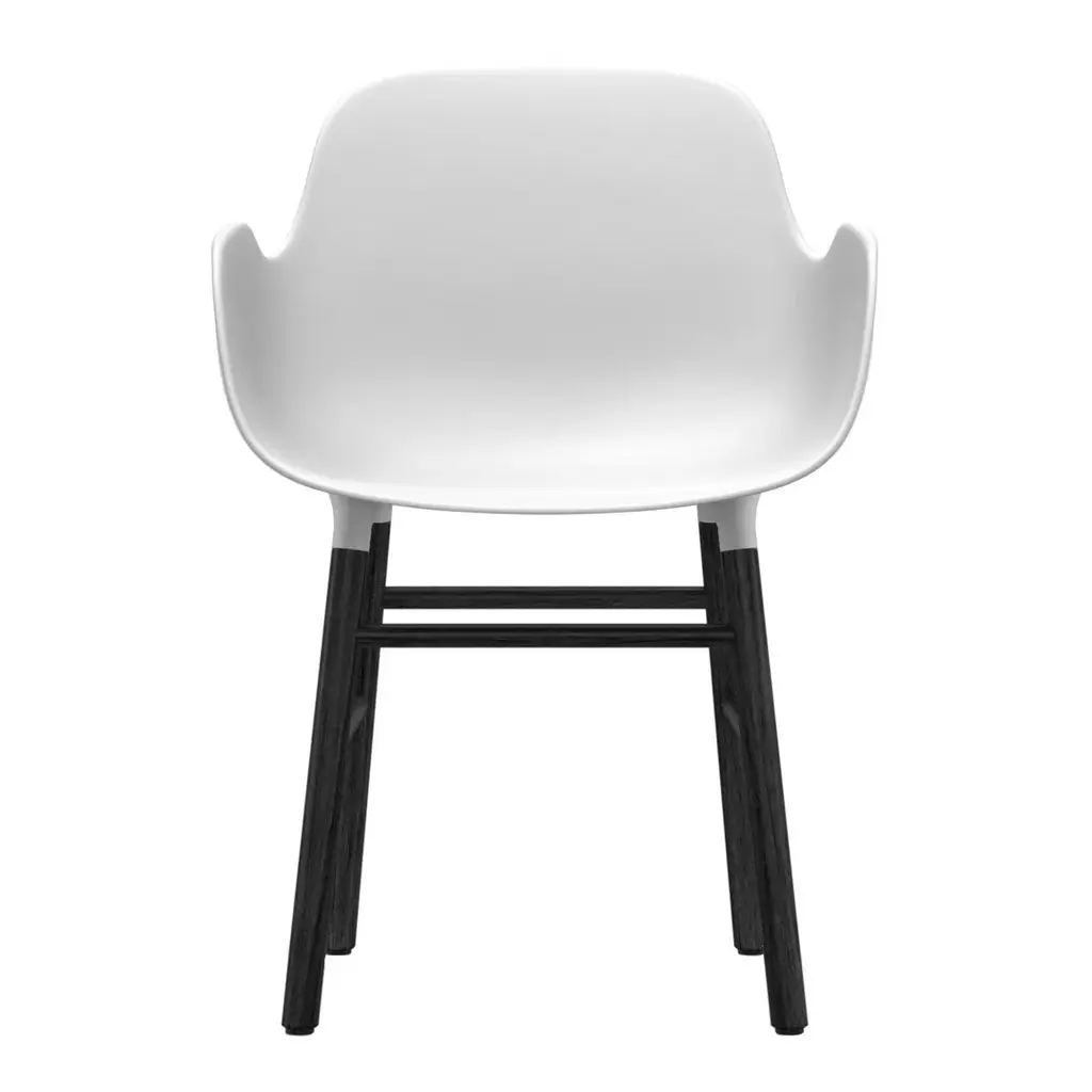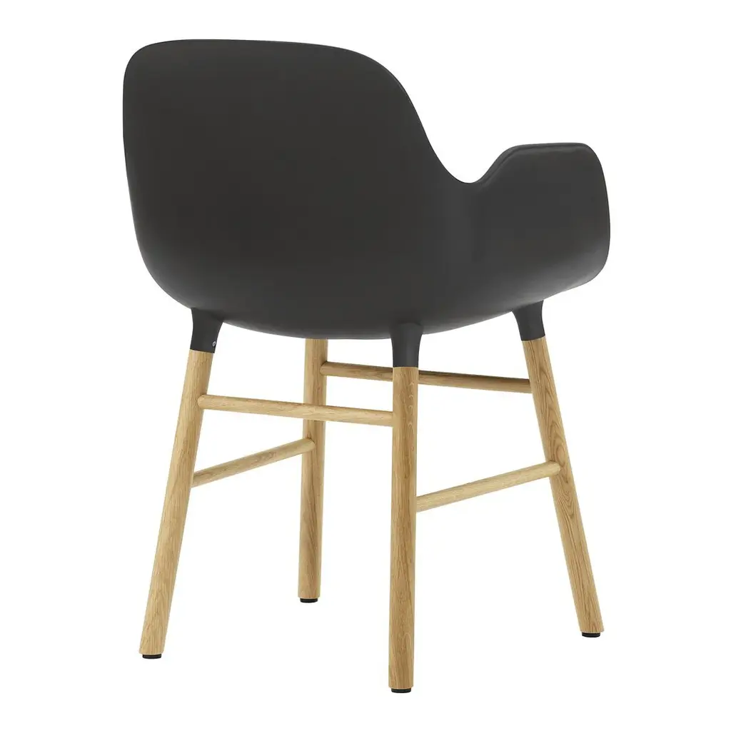 With the mission of creating a shell chair with a more unified look that would stand as one cohesive unit, Simon Legald has created the Form Chair for Normann Copenhagen.To achieve this seamless, integrated look, a new and innovative solution for joining the seat with the legs was developed. The curved plastic seat and frame of oak, walnut or steel are naturally integrated with the seat using a unique cup system. The plastic seat and wood or steel legs meet elegantly, accentuating the high quality craftsmanship and the simplicity of the Scandinavian furniture design. Form is a modern armchair with a minimalistic expression. With its simple and contemporary design Form Armchair has a soft and welcoming silhouette and a distinctly residential look. The legs appear almost as if they are growing out of the shell. This gives the design flexibility and makes it possible to vary the frame in a great number of ways, accommodating a vast number of interiors. The Form Armchairs have great back support and provide freedom of movement while the armrests provide extra room for relaxation. The strong materials and contoured shape ensures a comfortable seating experience. Combined with a clean design, that makes Form a flexible and functional chair for any room, for example as an office chair, a dining chair or occasional chair.