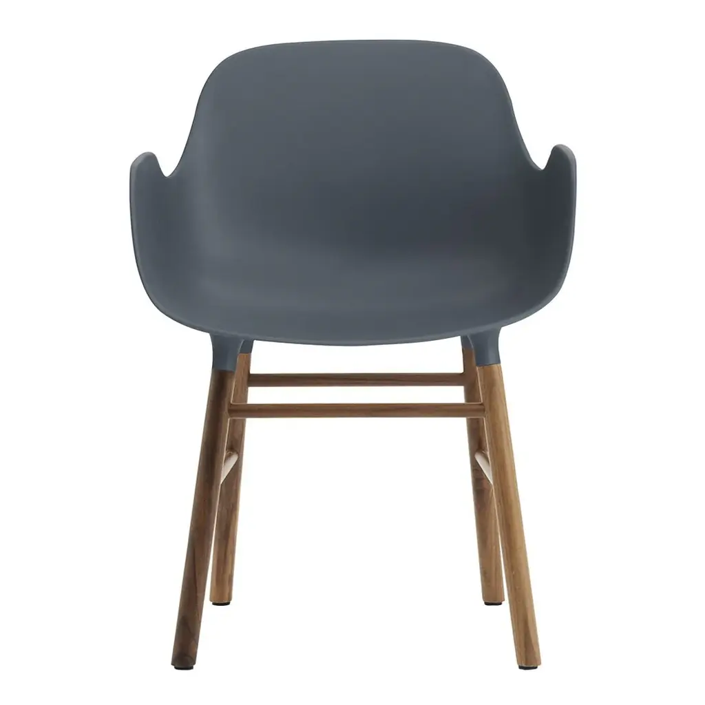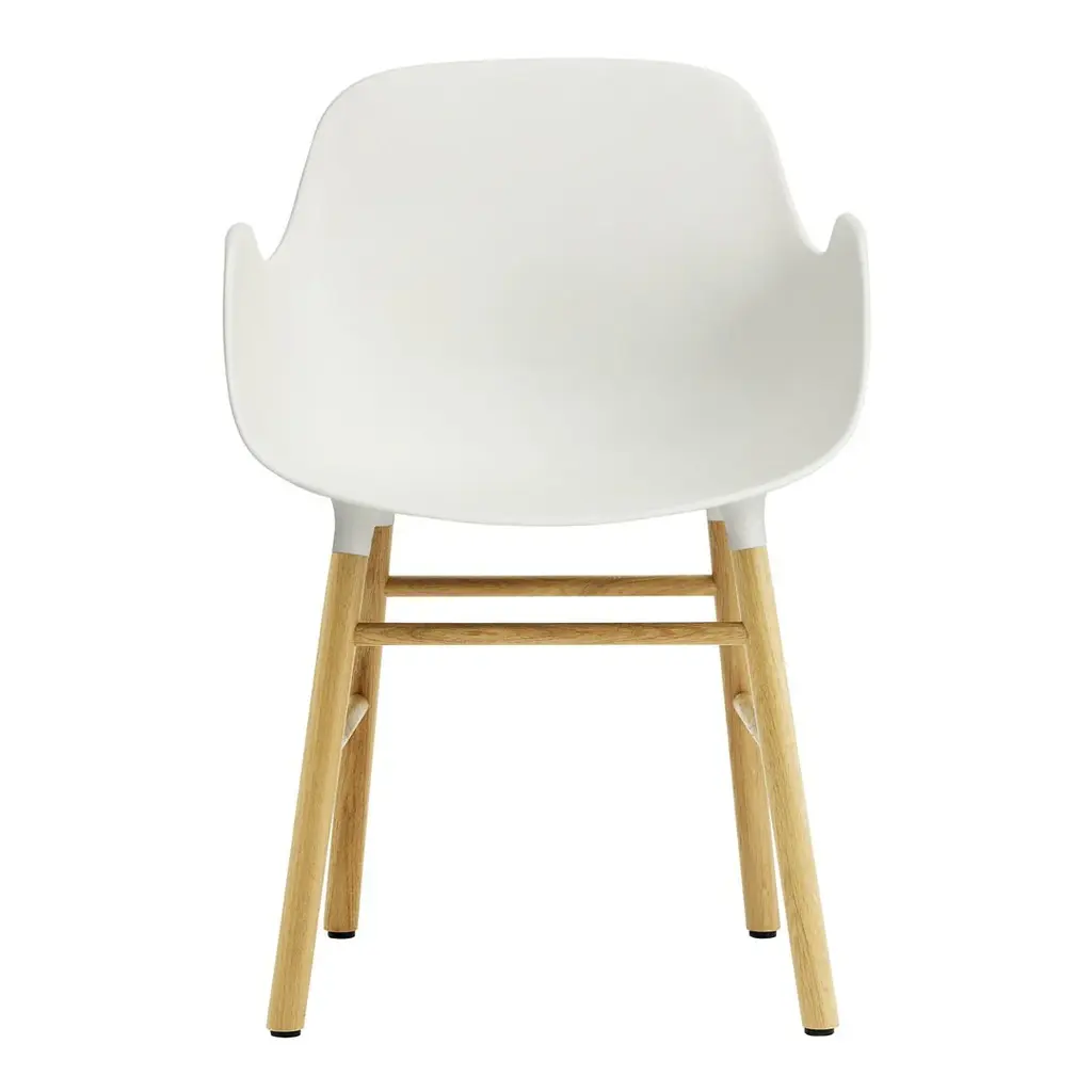 With the mission of creating a shell chair with a more unified look that would stand as one cohesive unit, Simon Legald has created the Form Chair for Normann Copenhagen.To achieve this seamless, integrated look, a new and innovative solution for joining the seat with the legs was developed. The curved plastic seat and frame of oak, walnut or steel are naturally integrated with the seat using a unique cup system. The plastic seat and wood or steel legs meet elegantly, accentuating the high quality craftsmanship and the simplicity of the Scandinavian furniture design. Form is a modern armchair with a minimalistic expression. With its simple and contemporary design Form Armchair has a soft and welcoming silhouette and a distinctly residential look. The legs appear almost as if they are growing out of the shell. This gives the design flexibility and makes it possible to vary the frame in a great number of ways, accommodating a vast number of interiors. The Form Armchairs have great back support and provide freedom of movement while the armrests provide extra room for relaxation. The strong materials and contoured shape ensures a comfortable seating experience. Combined with a clean design, that makes Form a flexible and functional chair for any room, for example as an office chair, a dining chair or occasional chair.