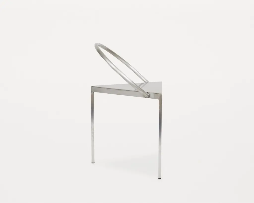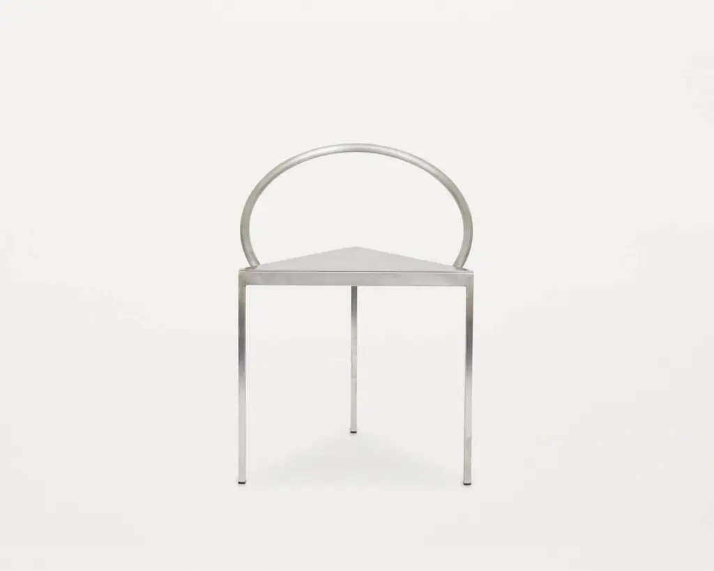 Designed by Per Holland Bastrup in 1989, the Frama Triangolo Chair embodies a breathtakingly progressive, sculptural design.Defined by sleek lines and simple geometric shapes, the striking chair offers a unique seating experience, whether used as a desk chair or a unique display piece. Crafted from solid steel, creating a minimalist, industrial aesthetic, the chair is both durable and functional. Light in shape and composition, Triangolo Chair is a true statement piece that instantly captures the eye - an expressive and contemporary combination of balance and simple elementary forms.Features- Mix between function and form: works well as a regular chair, or as a display piece- Designed in 1989- Solid constructionDesign- Per Holland Bastrup, 1989- Signature collection