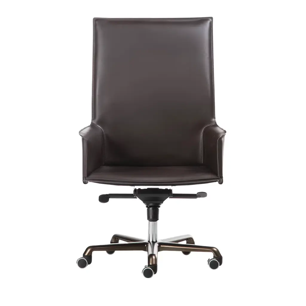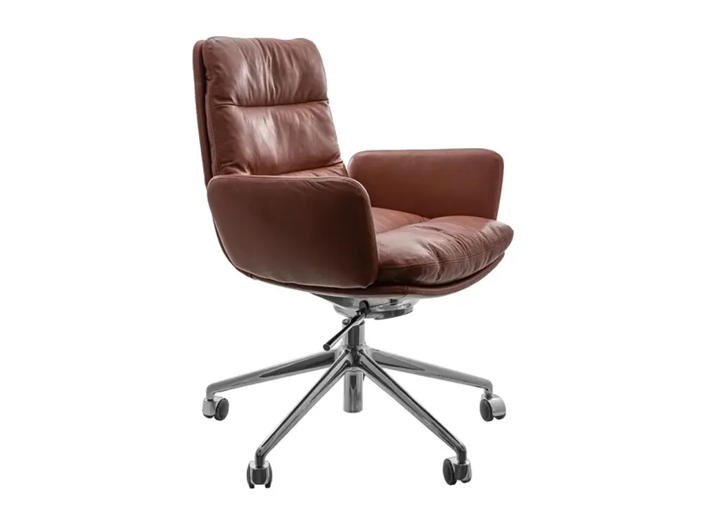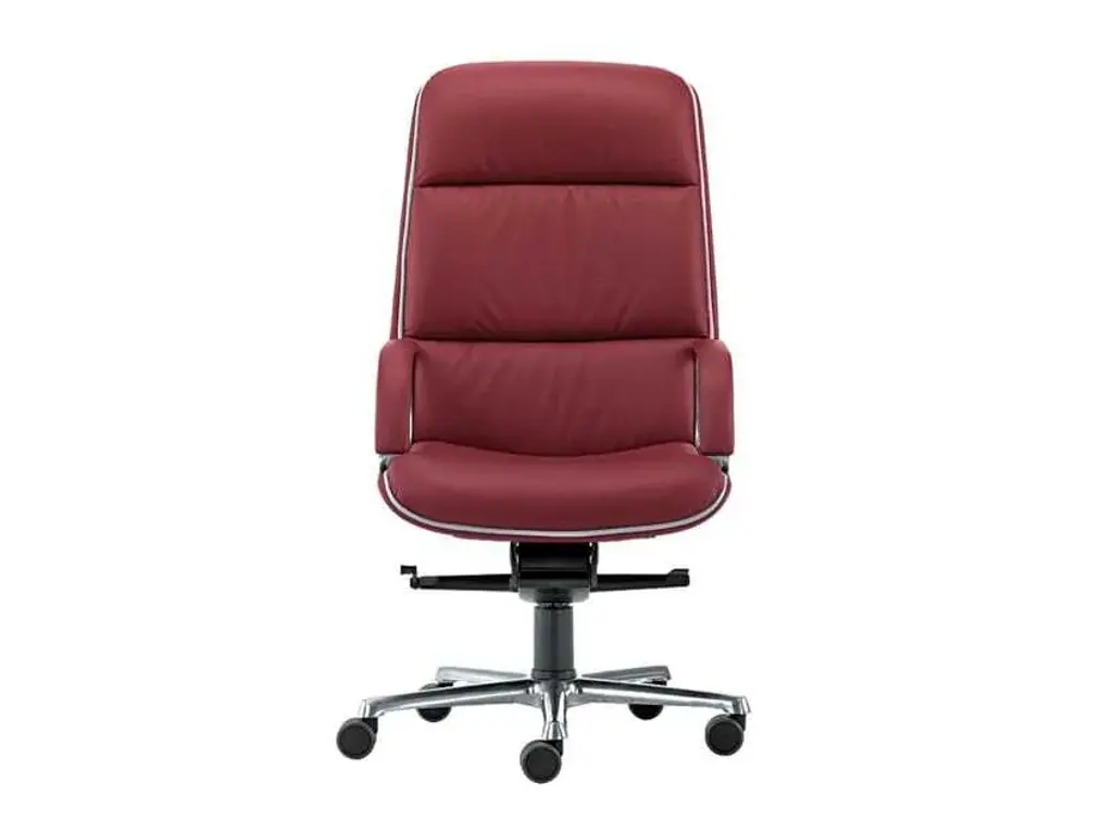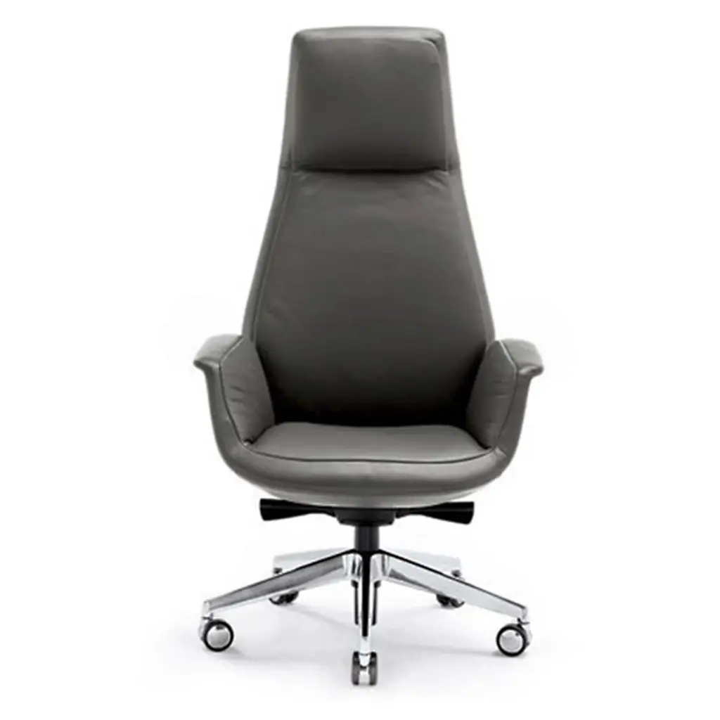 The prestigious Grand Executive armchair combines soft, high-quality leather upholstery with the individually adaptable FlowMotion mechanism for exceptional comfort. The Grand Executive Highback model is equipped with an adjustable neck cushion.Material description- Executive armchair in accordance with EN 1335.- Mechanism: FlowMotion mechanism with individual adjustment of backrest resistance.- Backrest and seat: seat shell with integrated armrests and height-adjustable neck cushion (Highback). Backrest shell made of plastic; seat and back upholstery made of polyurethane foam. Leather cover.- Base: five-star base in polished die-cast aluminium. With double castors (Ø 60 mm) for hard and soft floors in in basic dark.The Grand Executive chair combines the elegance of the Grand Repos lounge chair, which was designed by Antonio Citterio for the Vitra Home Collection, with the functionality of a modern office chair. The dignified aura of the Grand Executive chair is complemented by a sleek aesthetic. Covered in high-quality leather, its softly padded upholstery provides supreme comfort. Decorative seams highlight the chair’s handcrafted details and delineate its volumetric structure. The FlowMotion mechanism can be adapted to the individual user to ensure synchronised comfort in every sitting position. The Grand Executive Highback model is equipped with an adjustable neck cushion.The Grand Executive chair comes in different versions: Grand Executive Lowback is distinguished by its lower backrest and Grand Executive Conference offers a sophisticated solution for visitor and conference seating. Together with Grand Repos and Repos, they form a family of chairs that gives a unified look to offices and conference rooms as well as lobbies, waiting zones and reception areas.