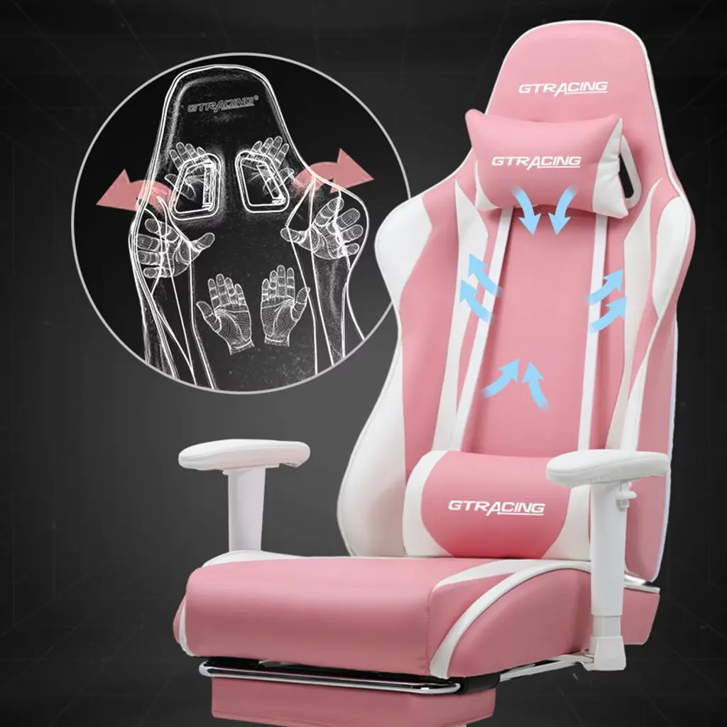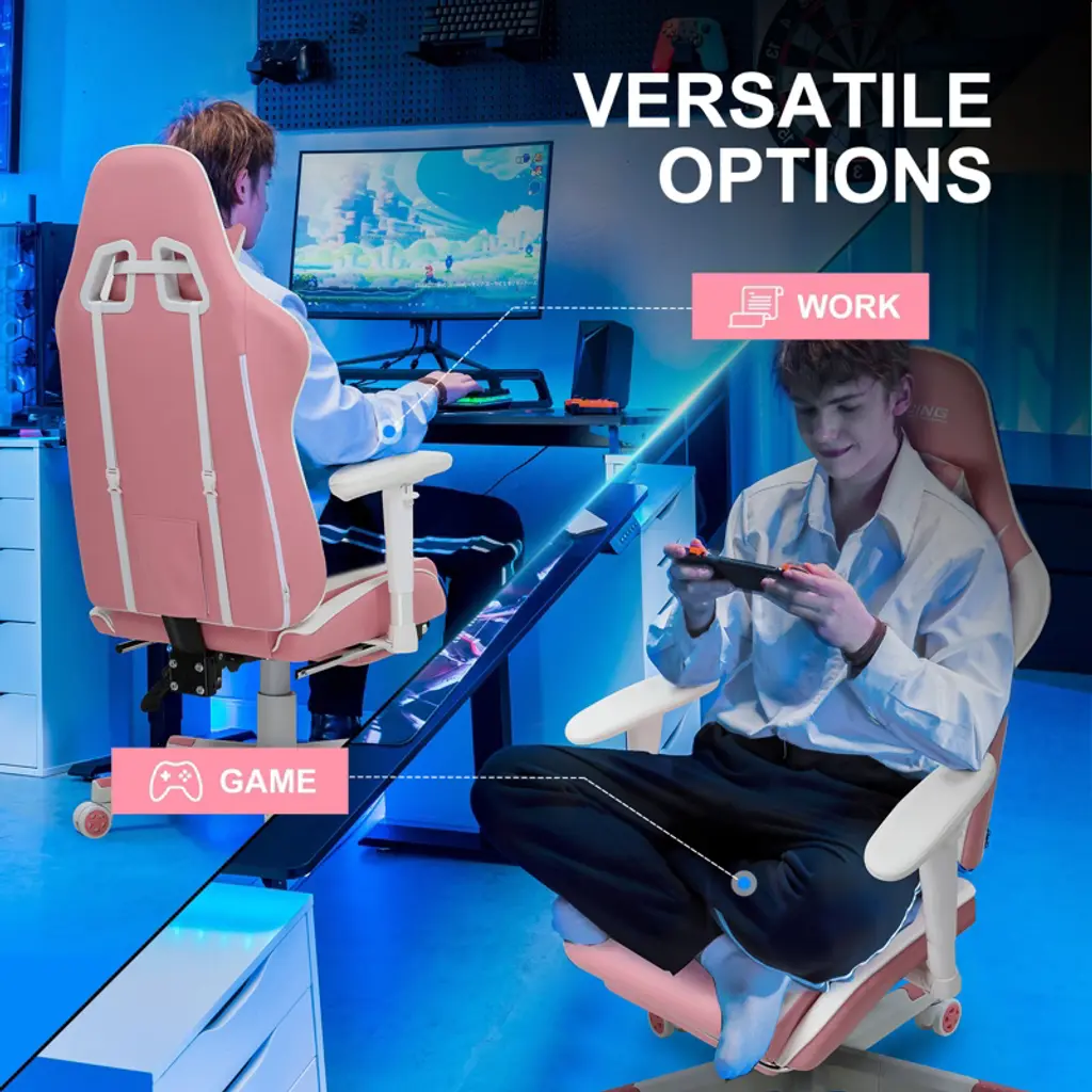 Gtracing Gaming Chair, Retractable Footrest, Premium Faux Leather, Adjustable Computer Office Chair, Pink