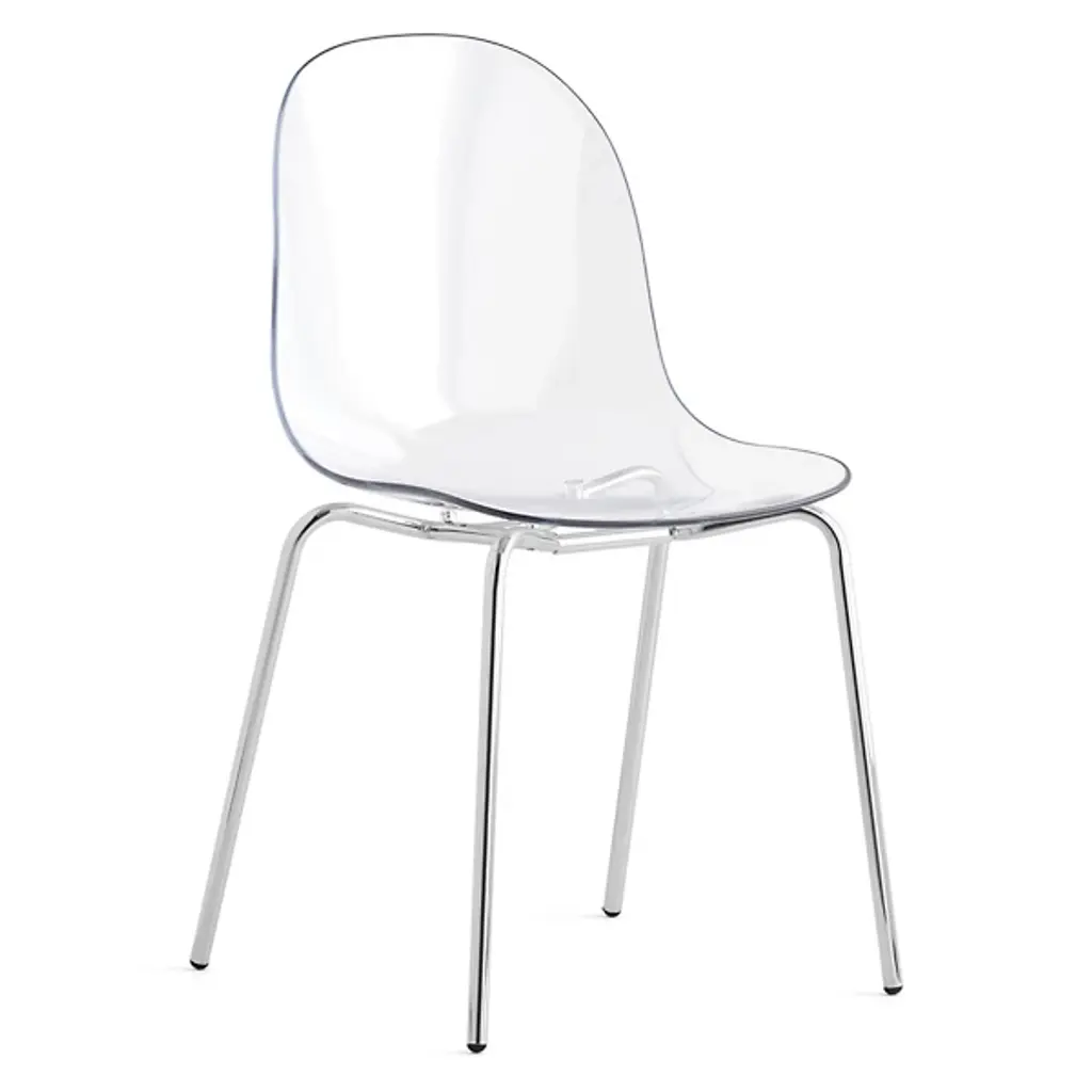 The Hamdin acrylic dining chair is crafted from 1/2" thick clear acrylic with a simple chromed steel base. Its 18" seat height makes it perfect for use with a standard dining table. Perfect for modern minimalist interiors, a matching office chair, dining chair and counter stool are also available. Customer assembly is required.
