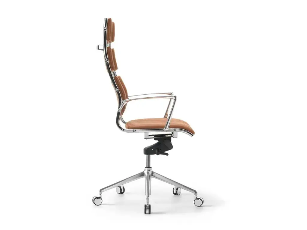 Havana is an upholstered, swivel and height-adjustable executive chair, with steel base and wheels. It represents the perfect union between order and beauty in working environments. A collection which grants comfort and quality and, at the same time, timeless beauty. Total customization: unlimited combinations of backrests, armrests and bases, the Havana collection can be easily placed in any location and allows to furnish all spaces with a hierarchical range of products.The backrest is available in two heights.