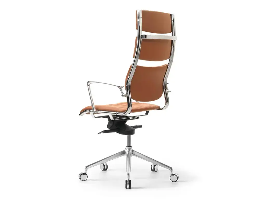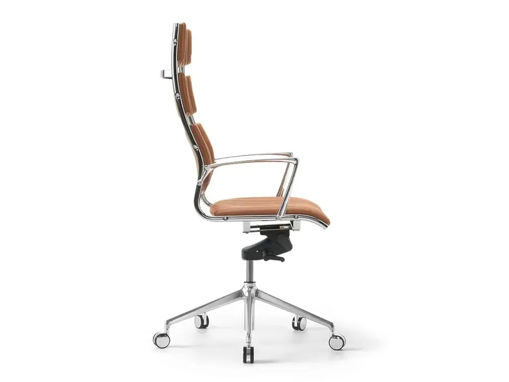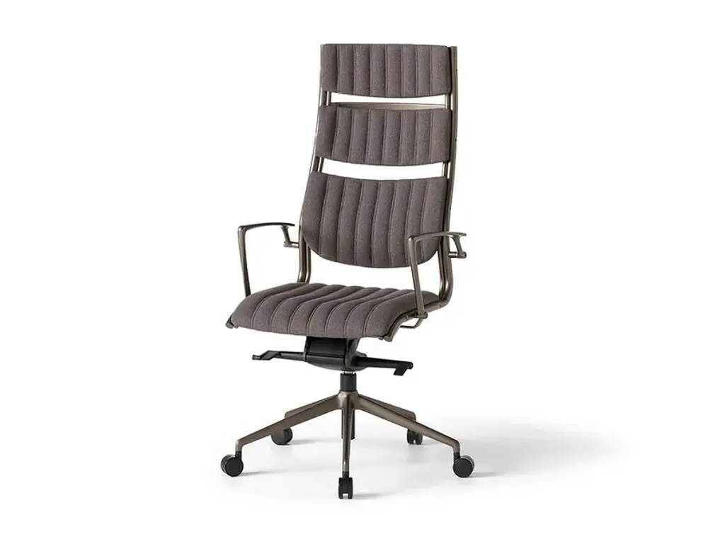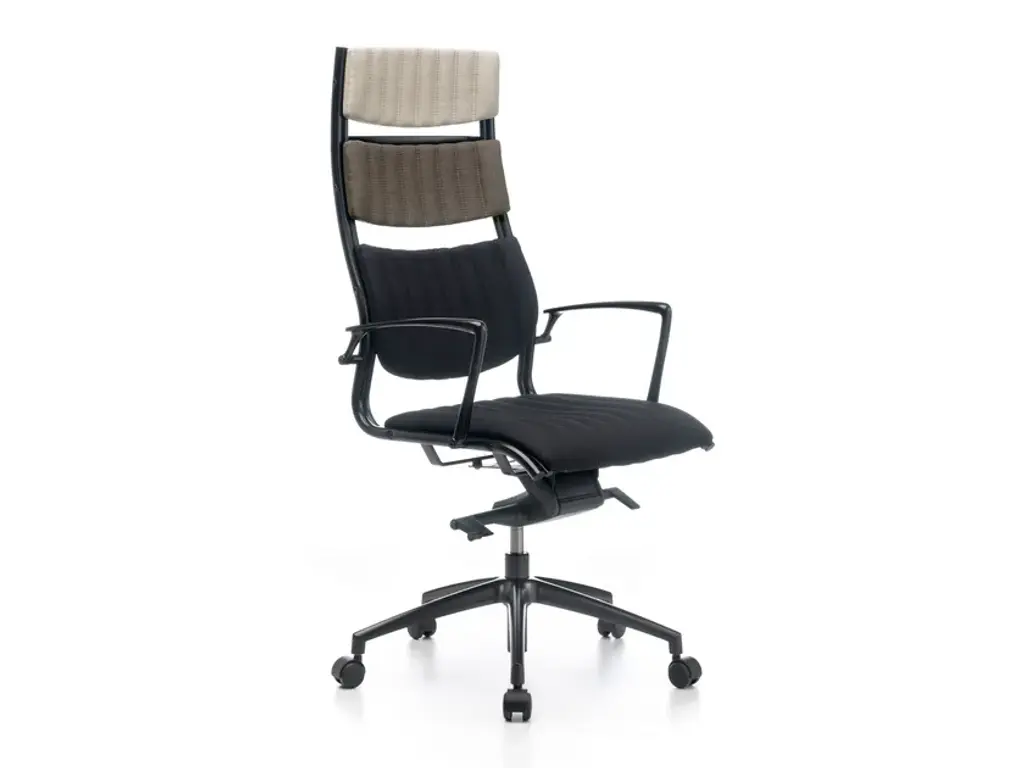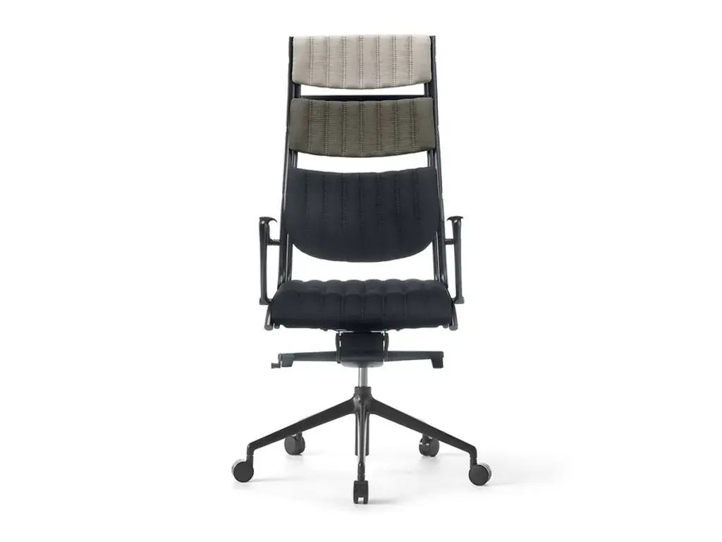 Havana is an upholstered, swivel and height-adjustable executive chair, with steel base and wheels. It represents the perfect union between order and beauty in working environments. A collection which grants comfort and quality and, at the same time, timeless beauty. Total customization: unlimited combinations of backrests, armrests and bases, the Havana collection can be easily placed in any location and allows to furnish all spaces with a hierarchical range of products.The backrest is available in two heights.