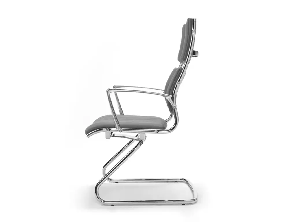 Havana is a sled-type office chair with armrests.Technical featuresStructural frameUnique bearing frame, high resistance chromed steel pipe (Ø 25 mm), coupled with internal chromed steel pipe (Ø 16mm). Bending of frame made by special machine. Hard soldering chromium plating, average thickness 25 microns.Inner frameDouble radius stratified curved beech plywood, warm shaped, 16 mm thickness.PaddingPolyurethane resin ELAST PERFORMANCE characterized by "smart memory", that allows the armchair to recover the initial support even after long and strong pressure. Havana chair has 6 different type of density. CFC-free. The foam is stitched with acrylic fibre layers & covering to reproduce the special embossed effect.ArmrestsArms in chromed steel, curving to variable degrees, round section diameter 16 mm, chromium plating, average thickness 25 microns, available with upholstered arm pad with double radius stratified curved beech plywood inner arm pad.Available with Polished aluminium arms, made with die-cast aluminium, exclusive design.BaseIn bent round-welded steel Ø 25 mm ASFORM 420/J2, chromium plating, average thickness 25 microns.Anti-slip polyurethane rubber gliders, assembled suitable for any type of flooring.Adjustable backrest with oscillation obtained with flexible steel (ASFORM 420/J2) to fit the user’s movements and guarantee an high level of comfort.