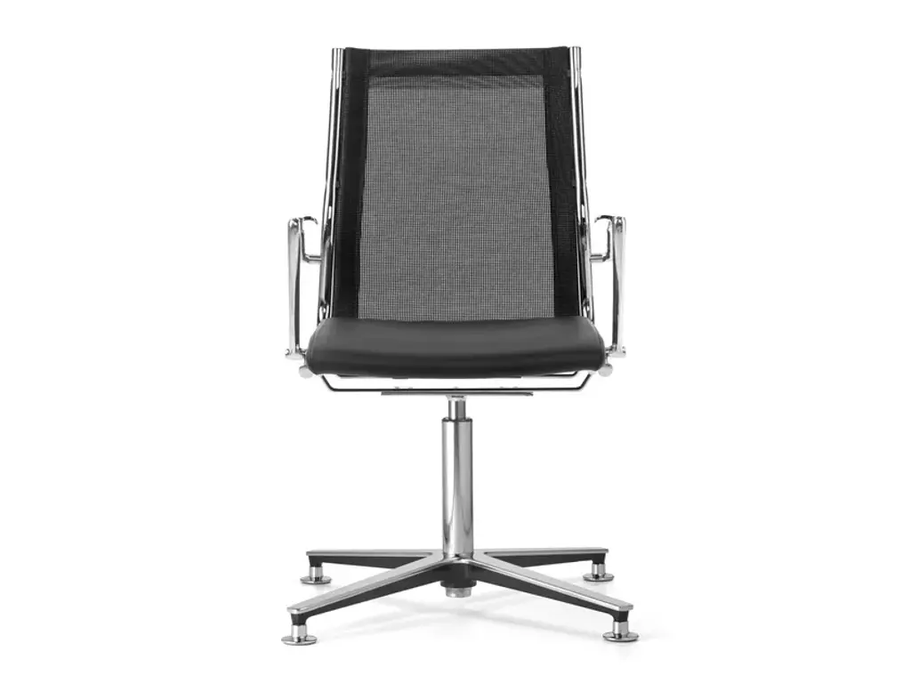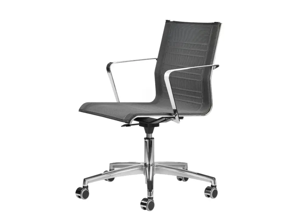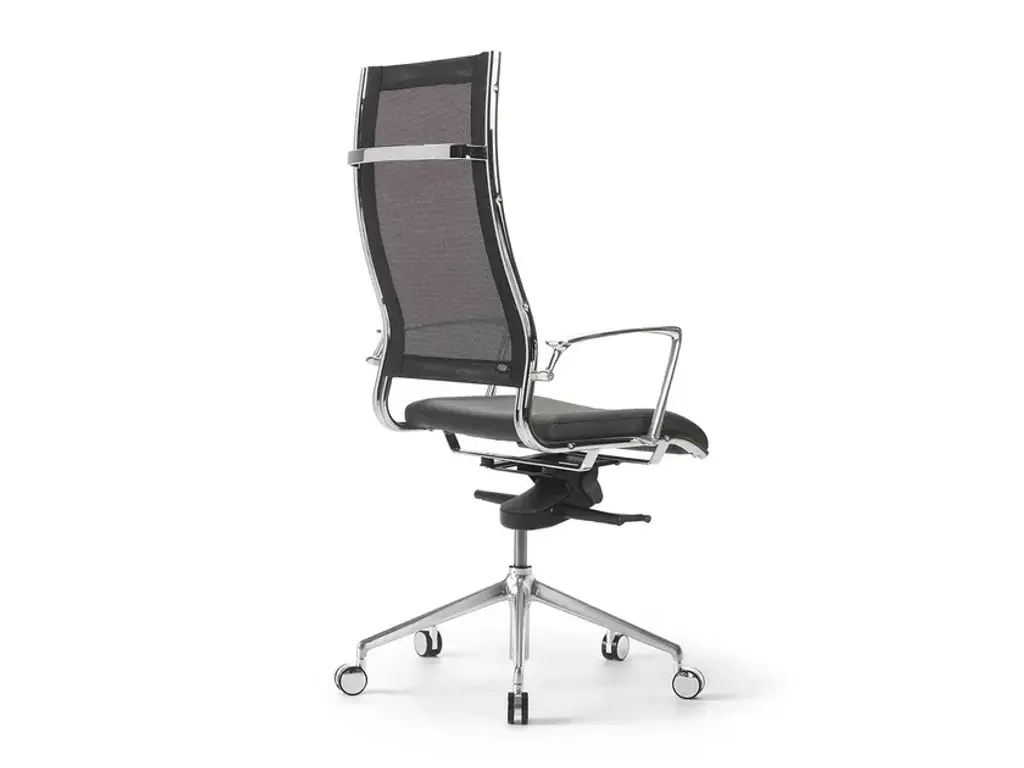 Havana is a swivel office chair with castors.Technical featuresStructural frameUnique bearing frame, high resistance chromed steel pipe (Ø 25 mm), coupled with internal chromed steel pipe (Ø 16mm). Bending of frame made by special machine. Hard soldering chromium plating, average thickness 25 micronsSeat frameDouble radius stratified curved beech plywood, warm shaped, 16 mm thickness.PaddingPolyurethane resin ELAST PERFORMANCE characterized by "smart memory", that allows the armchair to recover the initial support even after long and strong pressure. CFC-free.BaseSwivel base, five-spoke, polished aluminium, 688 mm. diameter (Lead is present in the aluminum to a lesser extent <0.20%, The aluminum used complies with 2005/95/CE, 2002/69/CE and 2003/108/CE). Recyclability 100%MechanismKnee tilt mechanism with side tension and front rotation point, Black or Polished aluminium main body's finishing, New side tension regulation with automatic location return, 4 locking positions, 0° front position, 16° tilt. The mechanism is certified ISO 21015:2007, EN and BIFMA. The mechanism is certified for 24 hour use and maximum weight of 150 kilo, in accordance with the norm BS 5459: Part 2:2000. The mechanism complies with USA Lead Paint Norm, 16 CFR Part 1303 12/21/2008.ArmrestsArms in chromed steel, curving to variable degrees, round section diameter 16 mm, chromium plating, average thickness 25 microns, available with upholstered arm pad with double radius stratified curved beech plywood inner arm pad.Available with Polished aluminium arms, made with die-cast aluminium, exclusive designGas liftPneumatic seat height adjustment, Gas lift column, CLASS 4 DIN 455, chromium plated cone.CastorsØ 50 mm twin castors, with safety brake, made of reinforced copolymer on request with chromed die-cast zamak hood, castors standard colour black, available with soft border made of polyurethane rubber. Castorbore ø mm.10 stem without steel circlip in the lower part, that fits into the castor body, attachment pin with plastic bushing. Certified EN 12529 standard. Max load each N35. Havana is an upholstered, swivel and height-adjustable executive chair, with steel base and wheels. It represents the perfect union between order and beauty in working environments. A collection which grants comfort and quality and, at the same time, timeless beauty. Total customization: unlimited combinations of backrests, armrests and bases, the Havana collection can be easily placed in any location and allows to furnish all spaces with a hierarchical range of products.The backrest is available in two heights.