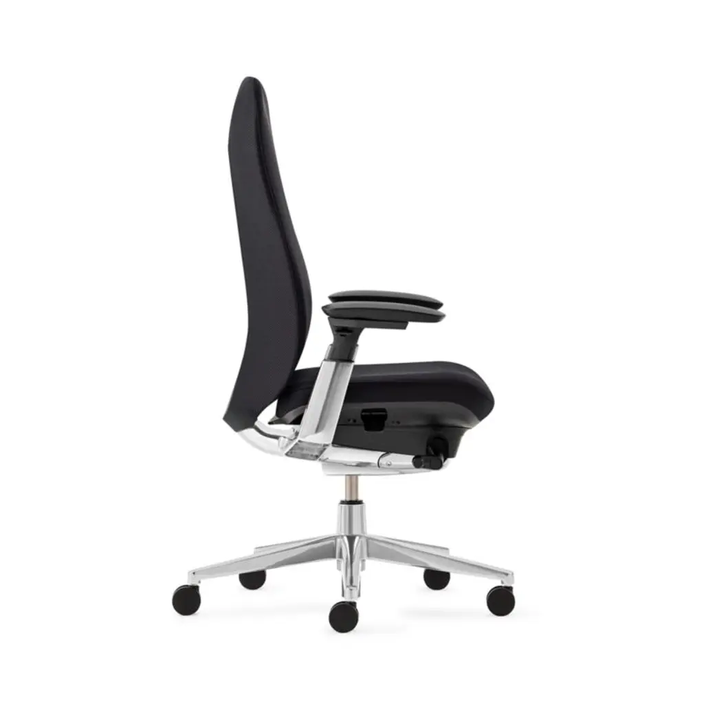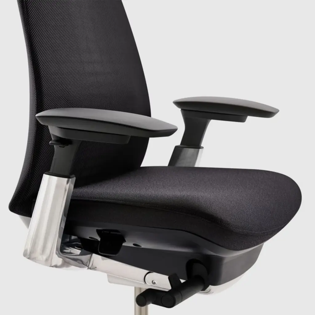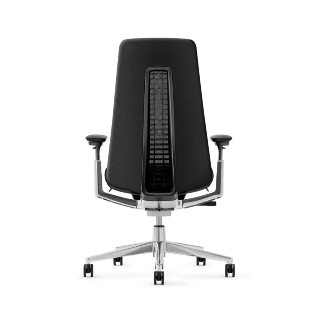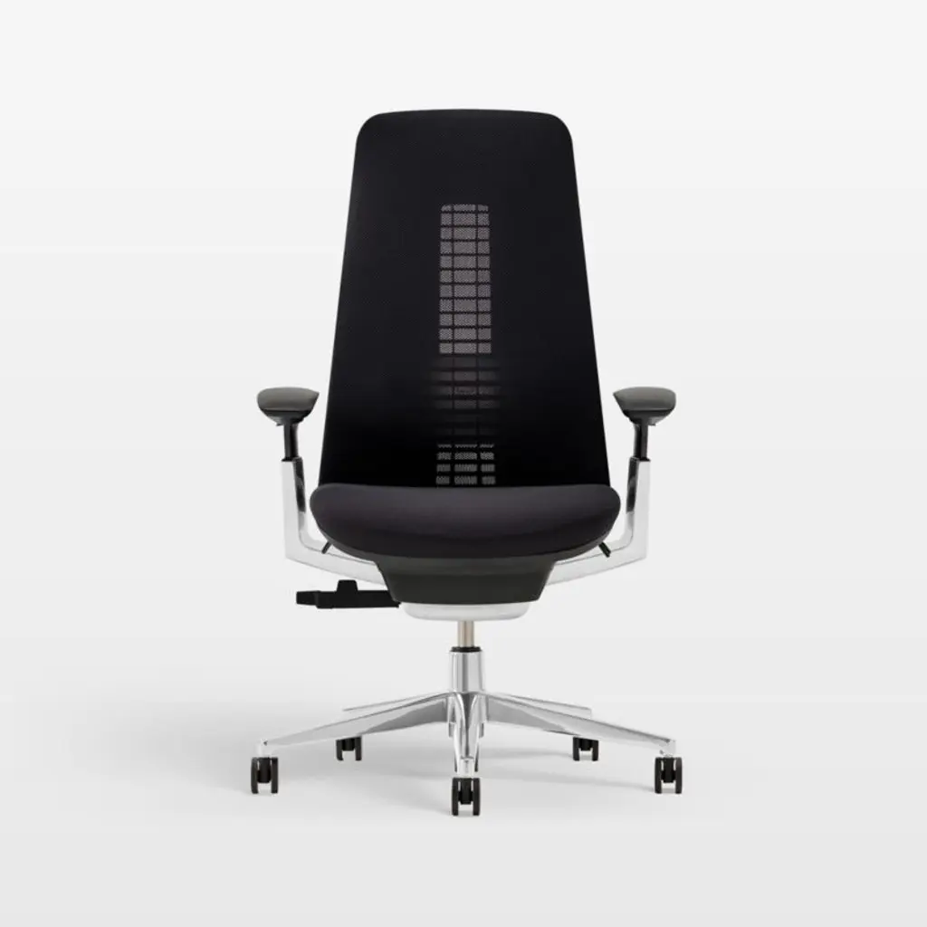Inspired by the natural suppleness and beauty of a fern leaf, this office chair provides new levels of balance, flexibility, and performance. Designed in consultation with experts in biomechanics, physical therapy, and kinesiology, Fern evenly distributes weight as you move to relieve pressure. The patented Wave Suspension system mimics the human spine and cradles the body in comfort. Innovative 4D arms not only adjust in height but also move in multiple directions for customized support. Upholstered in a durable black textured fabric, the seat is complemented by a black airy mesh back that delivers firm support and naturally regulates body temperature by letting air pass through.
