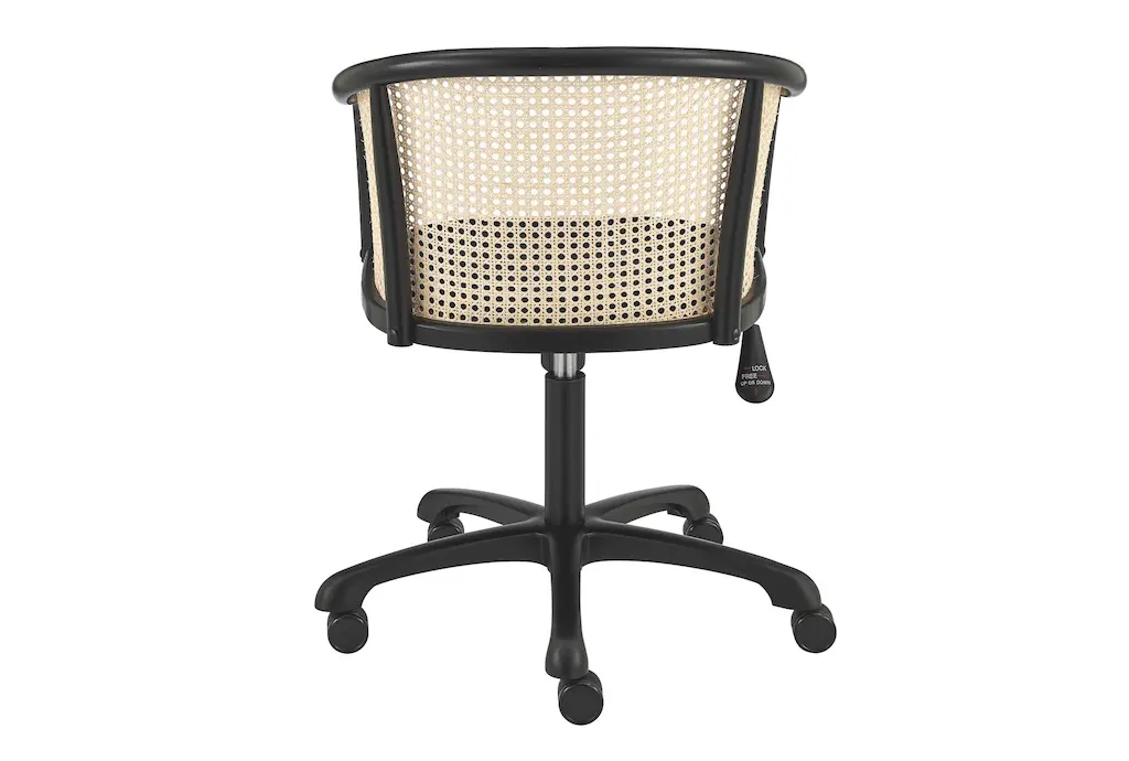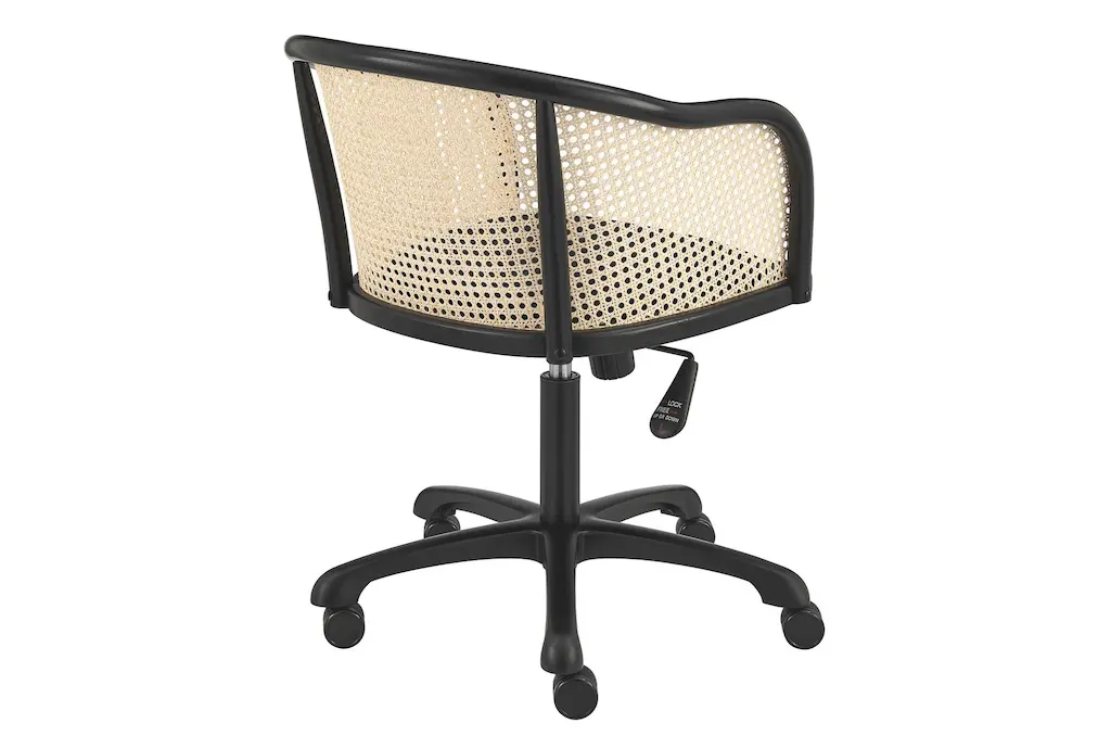 The Hedda Rolling Office Desk Chair combines style and functionality, making it a perfect addition to any office space. Its black velvet seat offers a comfortable and luxurious seating experience, while the natural accents add a touch of boho charm. Designed with ergonomics in mind, this chair ensures you stay comfortable throughout your workday.