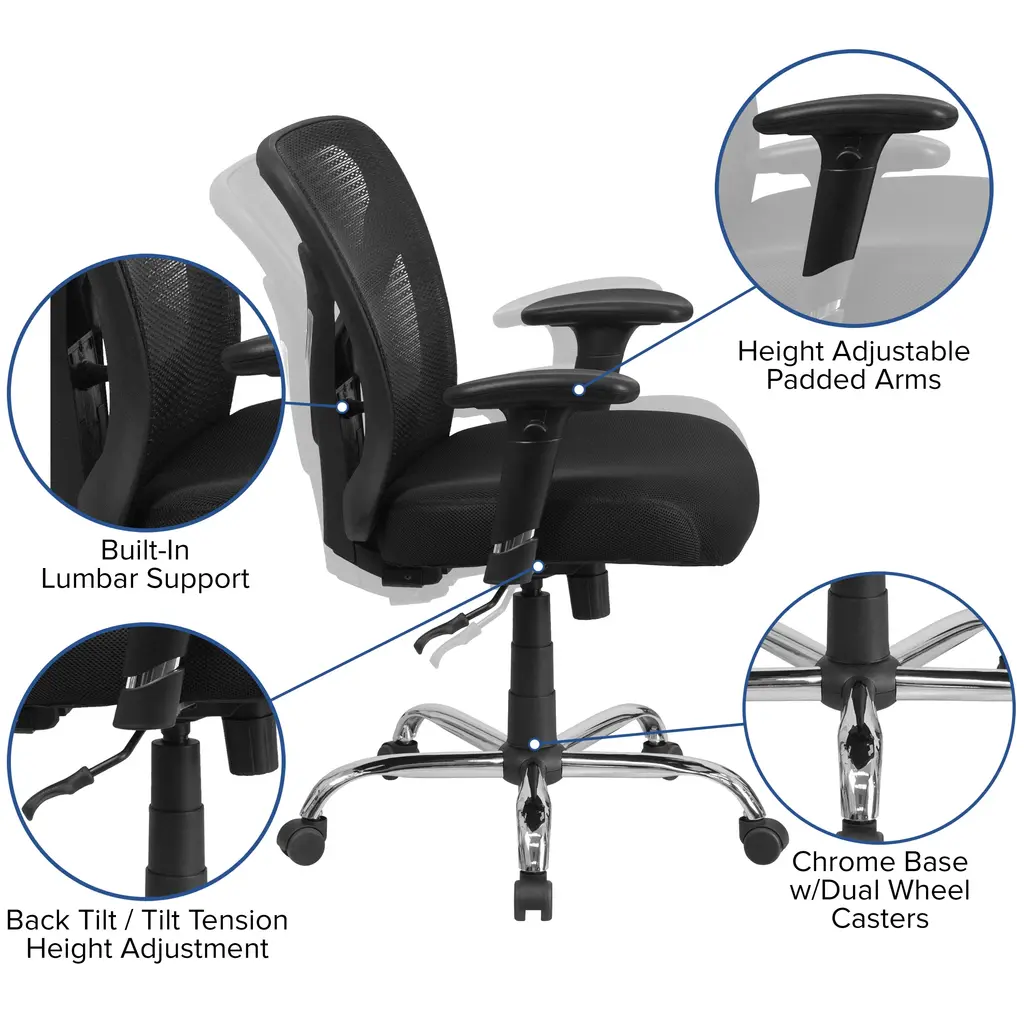 Hercules Series Big & Tall 400 Lb. Rated Mesh Swivel Ergonomic Task Office Chair With Height Adjustable Back And Arms