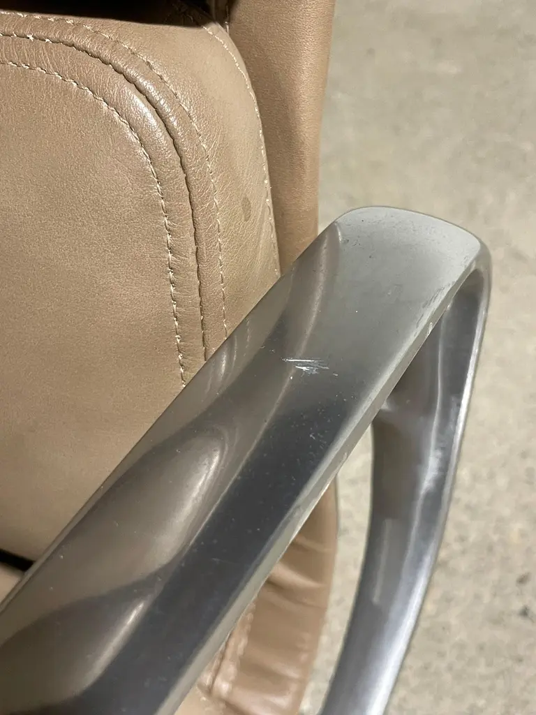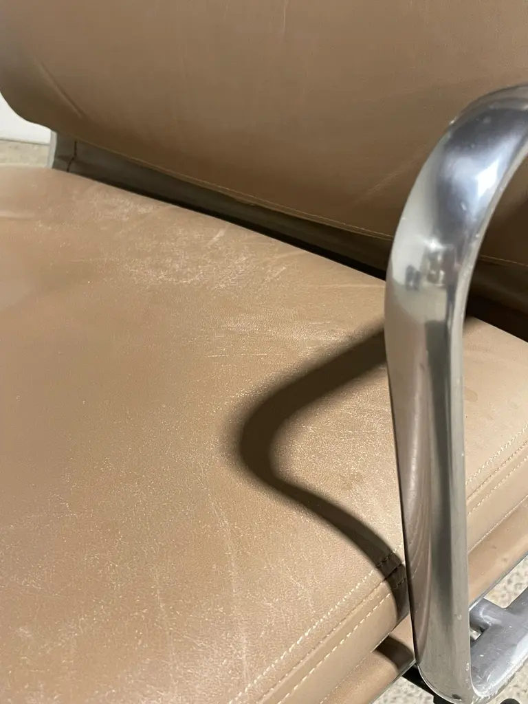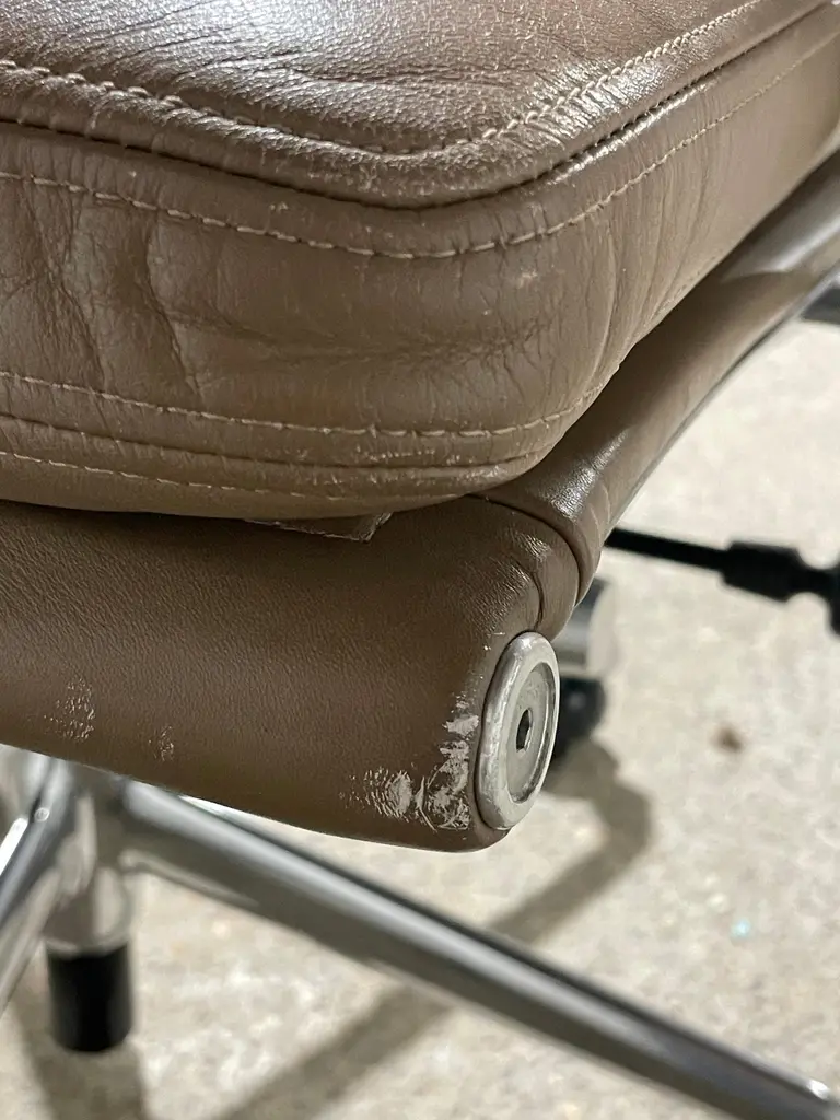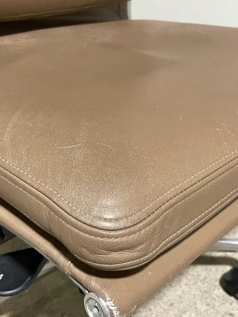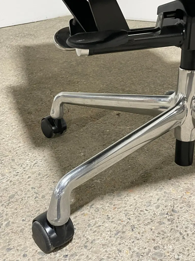Presenting the iconic Eames Aluminum Group Executive-Height Soft Pad Desk Chair, originally designed by Charles and Ray Eames for Herman Miller in 1968. This example is from the mid 2010s. Very good overall condition.Ships from Philadelphia PA.Ships via UPS or custom shipping quotes available.Each chair measures 23 inches deep, 23 inches wide, and 40.25 inches high. It has a minimum seat height of 19.25 inches that is adjustable to 22.5 inches. It has a seat depth of 16.5 inches. The leather is in good condition with some patina present. The aluminum bases have some normal light wear present. The arms are in good shape and with some minor wear.