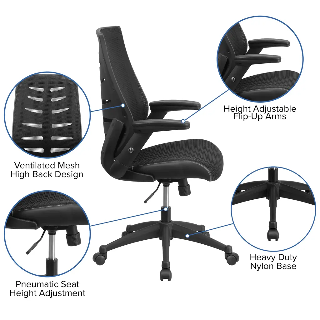 High Back Designer Mesh Executive Swivel Ergonomic Office Chair With Height Adjustable Flip-Up Arms