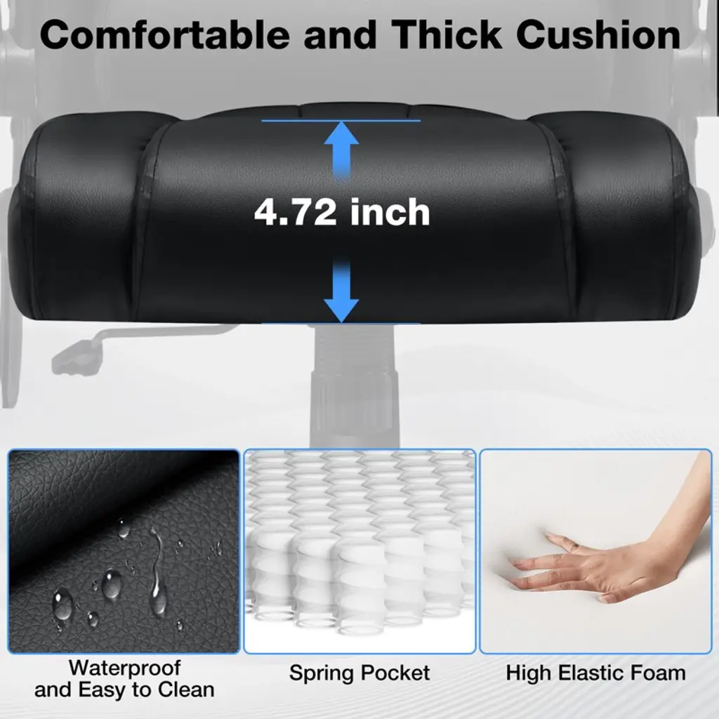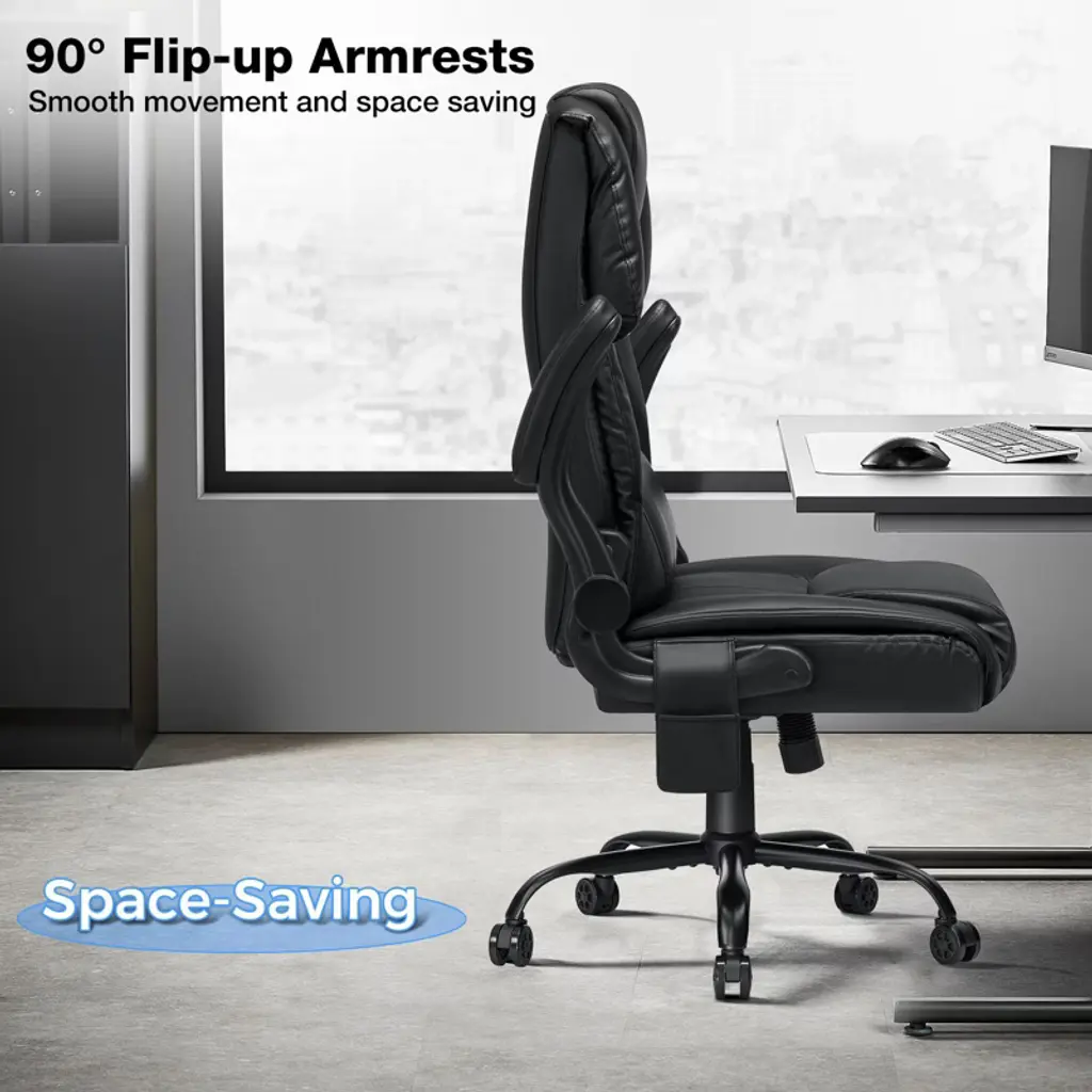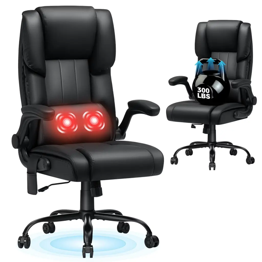 Upgrade your workspace with the HOFFREE Executive Chair!Experience ultimate comfort with built-in heat and massage, perfect for relaxing after a long day. Designed with high-density memory foam and adjustable features, this chair provides support for long hours of work, gaming, or reading. Plus, the space-saving flip-up armrests make it ideal for any desk setup.Durable, stylish, and comfortable, your new go-to office chair is here!#WorkFromHome #GamingChair #MassageChair #ComfortAndStyleSPECIFICATIONSBrand: HOFFREEColor: BlackProduct Dimensions: 20.87"D x 20.87"W x 49.61"HSpecial Feature: Adjustable Height, Space Saving, Heated, Heavy Duty, MassageRecommended Uses For Product: Office, Relaxing, Reading, Computer, GamingMaterial: Faux Leather, MetalItem Weight: 41.8 PoundsFrame Material: MetalStyle: ExecutivePACKAGING INCLUDES1 x Reclining Office ChairCONTACT USIf you have any problems with our items or services, please feel free to contact us any time.We are always online and do our best to solve your problems and provide you with the best customer services!