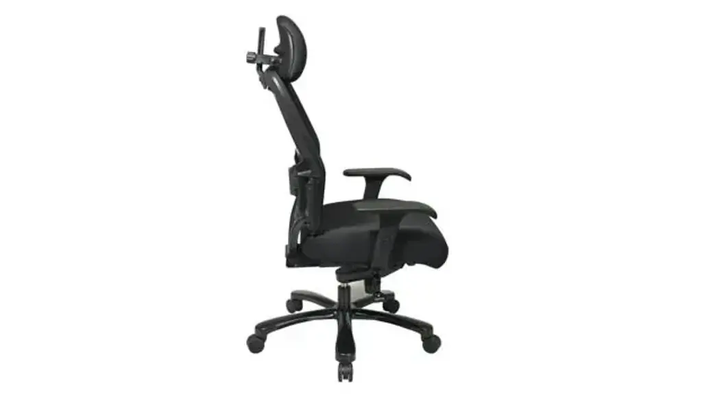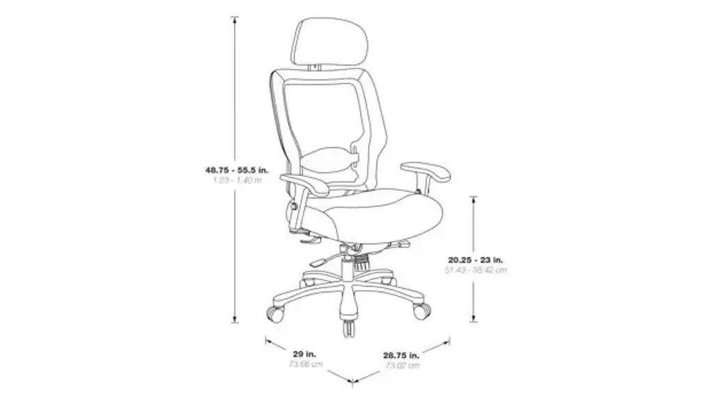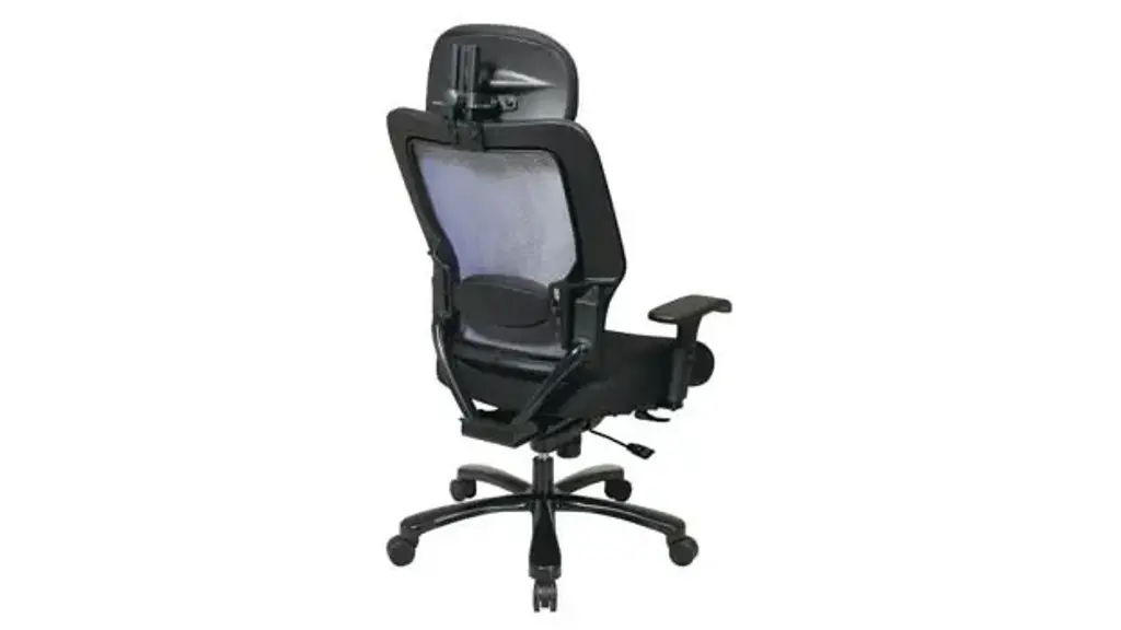Big & Tall Dual Layer Air Grid Mesh Manager Chair with Headrest. Breathable Mesh Black Fabric Seat and Back. Adjustable headrest, 2-way adjustable arms, adjustable lumbar and industrial steel finish base. Pneumatic Seat Height Adjustment, Mid-Pivot Knee Tilt, Tilt Tension, Tilt Lock. Chair rotates a full 360 degrees in either direction. Big & Tall 400 lb weight capacity. Overall Dimensions: 28.75" W x 29" D x 48.75 - 55.5" H Seat: 21.5" W x 21.5" D Back: 21" W x28.5" H Seat Range: 20.25-23 Arms to Floor: 26" Ships ready for easy assembly. Mesh Black Fabric Seat, Mesh Back, Adj. Lumbar, 2-way Adj. Arms, Adj. Headrest, Industrial Steel Base, 400 lbs.