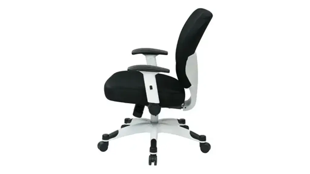 Deluxe Task Chair with Synchro-Tilt Control is a playful yet professional chair that features built-in lumbar support with a thickly padded mesh seat and back. A pressurized seat height adjustment maintains you at the perfect level while the adjustable tilt tension lets you recline effortlessly. Height adjustable arms flip back for your convenience while the dual wheel carpet casters allow you to glide smoothly. Available in a variety of seat and back fun fabric colors, this piece is destined to become an office favorite. The 2 to 1 synchro tilt tension allows for maximum control of your posture. White Base makes this office chair standout. Ships ready for easy assembly.