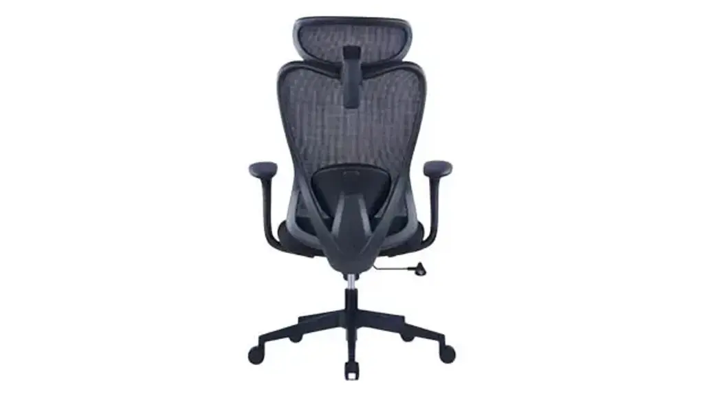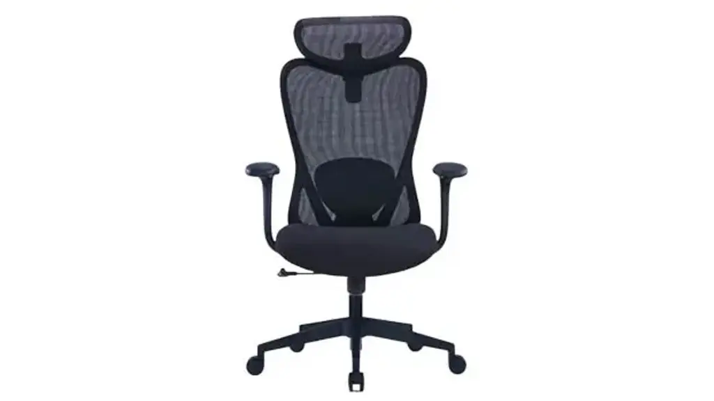 This chair perfectly balances proportioned scale, plush cushioning, and refined style, featuring a high back with headrest, fixed arms, and single-position synchro mechanism. Black fabric seat, black frame, black mesh back. Single position synchro-tilt mechanism. Fixed arms. Adjustable lumbar support. Tension adjustment. High back with headrest. Overall Dimensions: 38.5" W x 25.2" D x 44.9"- 48"H. Ships ready for easy assembly.
