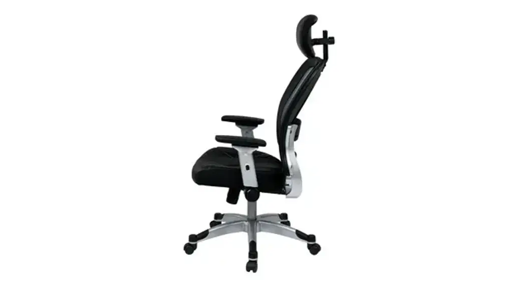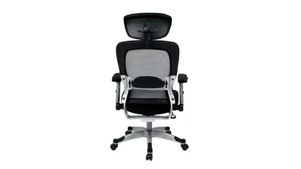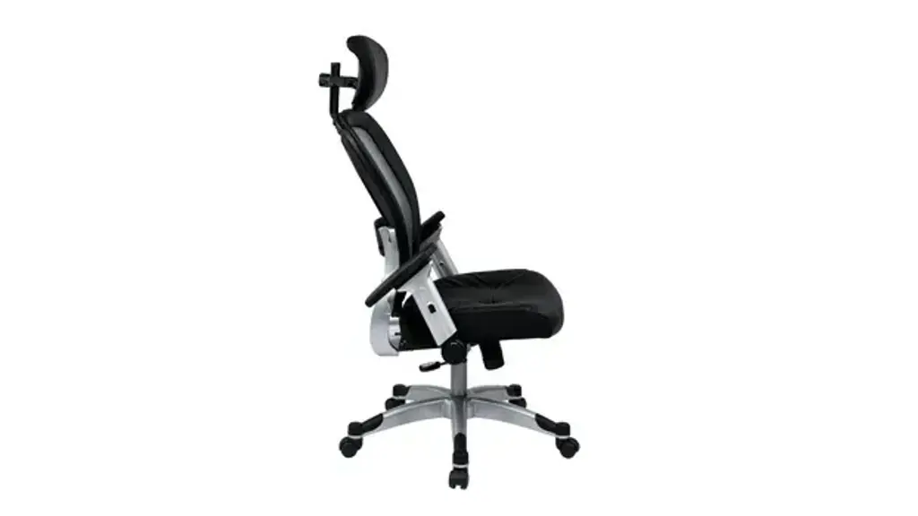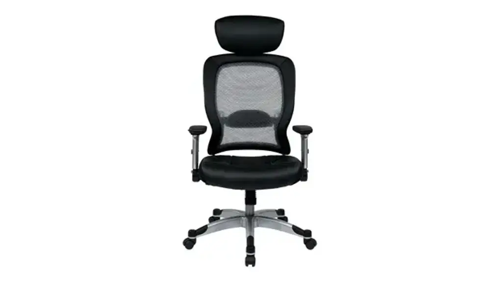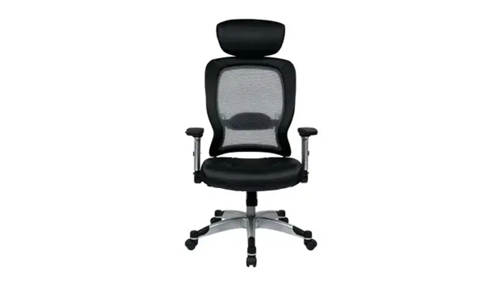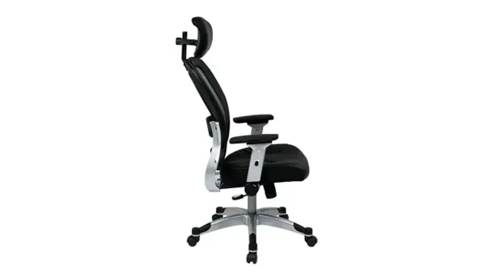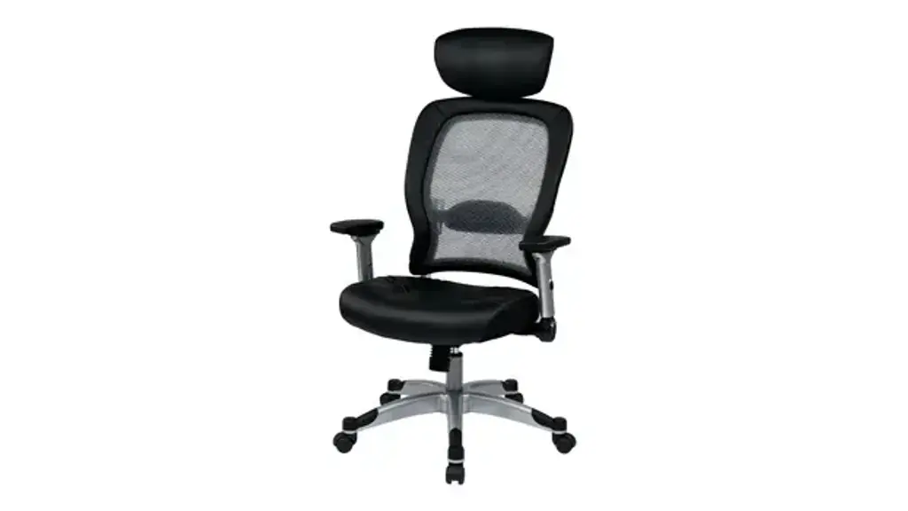 The Eckel Series light mesh back and bonded leather seat chair. Featuring adjustable lumbar support, 2-to-1 synchro tilt, seat height adjustment and platinum finish base. Includes flip arms and adjustable headrest. Ships ready for easy assembly.