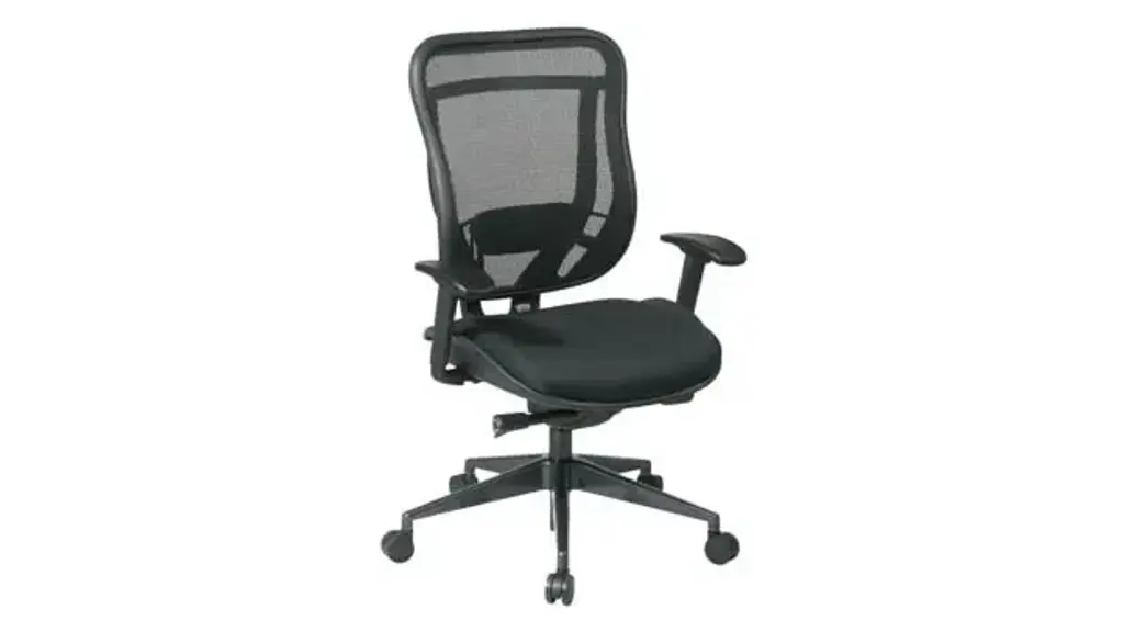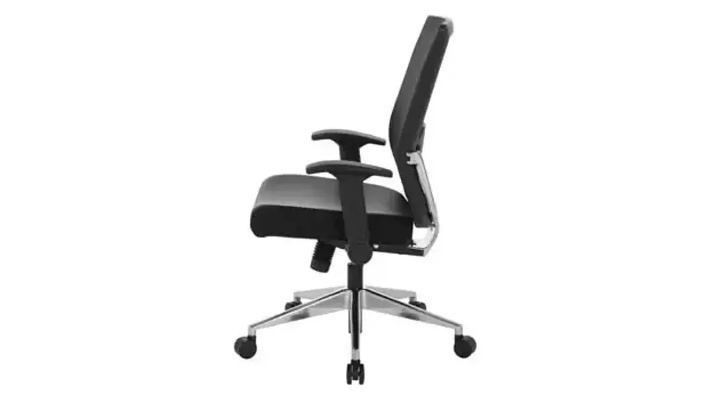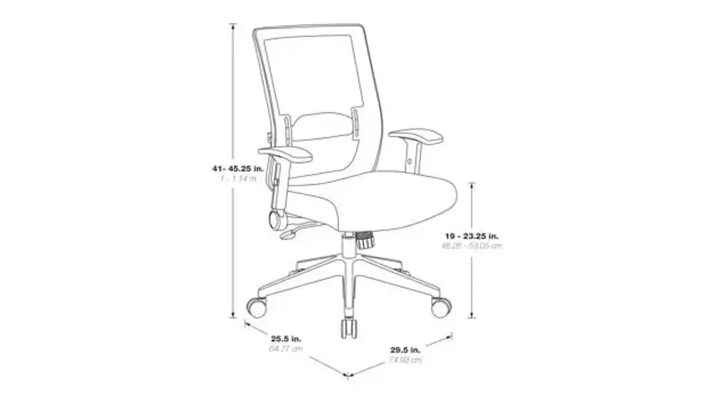 Black Matrix Mesh Back, Bonded Leather Seat, Height Adjustable Lumbar Support, Adjustable Flip Arms with Polished Aluminum Back Support and Base. Pneumatic Seat Height Adjustment, 2-to-1 Synchro Tilt, Tilt Tension, Tilt Lock. Chair rotates a full 360 degrees in either direction. Overall Dimensions: 29.5" W x 25.5" D x 41-45.25" H Seat: 20" W x 20" D Back: 19" W x 23.5" H Seat Range: 19-23.25 Arms to Floor: 25.5" Ships ready for easy assembly.