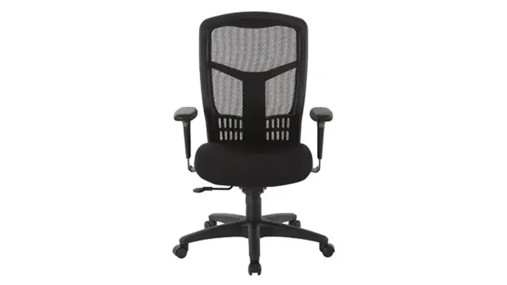 Introducing the High-Back ComfortMesh Collection office chair with synchro tilt funcition in Quick Ship Black - the perfect combination of comfort, customization, and quality. In stock and ready for shipment. Designed for comfort and support. With built-in lumbar support, one-touch pneumatic seat height adjustment and a 2-to-1 synchro control with seat slider and adjustable tilt tension, you can easily find the perfect position to suit your needs. Our height, width, and depth adjustable PU padded arms provide additional support and comfort, while the heavy-duty nylon base with dual-wheel carpet casters ensures stability and easy mobility. And with GREENGUARD certification, you can trust that our chair meets strict environmental and indoor air quality standards. Upgrade your workspace with the High-Back ComfortMesh Collection office chair with synchro tilt function in quick ship black fabric and experience the ultimate in comfort, customization, and quality.