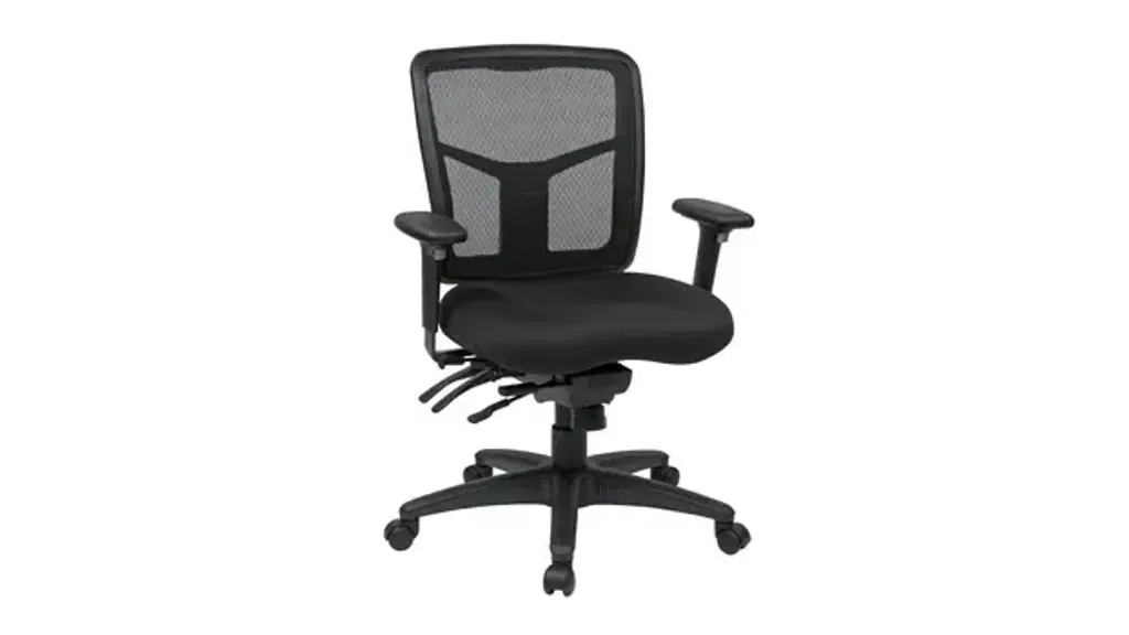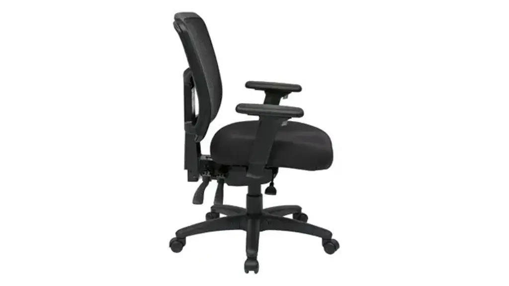 Introducing the Mid-Back ComfortMesh Collection office chair in Quick Ship Black with dual function control - the perfect combination of comfort, customization, and quality. In stock and ready for shipment. Designed for maximum comfort and support. With built-in lumbar support, one-touch pneumatic seat height adjustment, ratchet back height adjustment, and a dual function control with seat slider. Our height, width, and depth adjustable PU padded arms provide additional support and comfort, while the heavy-duty nylon base with dual-wheel carpet casters ensures stability and easy mobility. And with GREENGUARD certification, you can trust that our chair meets strict environmental and indoor air quality standards. Upgrade your workspace with the Mid-Back ComfortMesh Collection dual function control office chair in quick ship black fabric and experience the ultimate in comfort, customization, and quality.