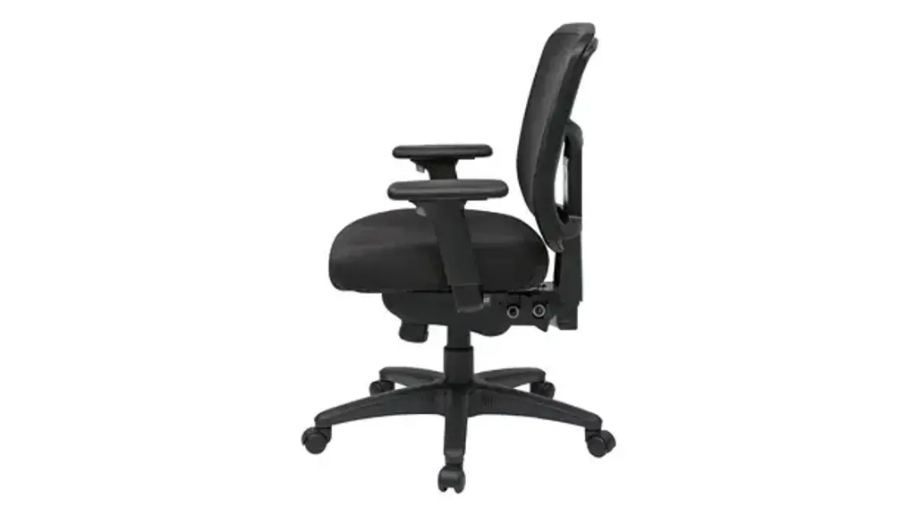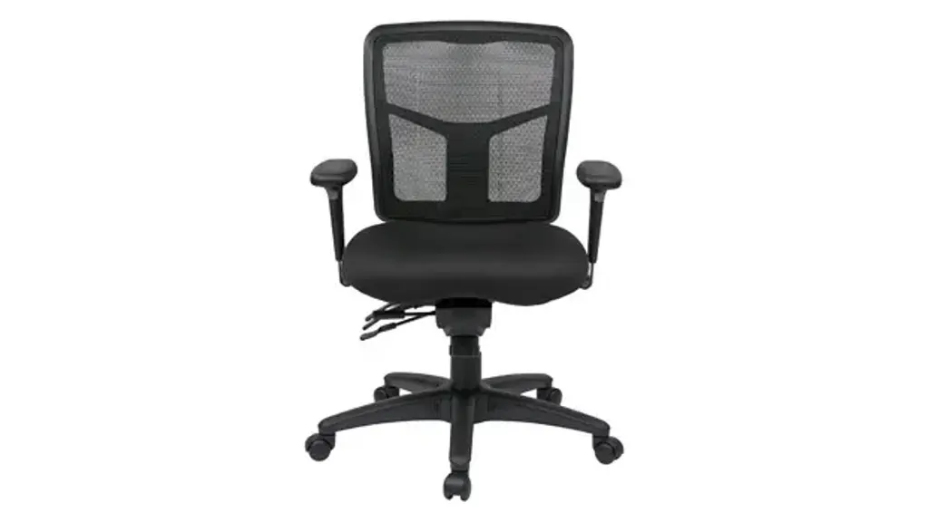 Introducing the Mid-Back ComfortMesh Collection office chair in Quick Ship Black - the perfect combination of comfort, customization, and quality. In stock and ready for shipment. Designed for maximum comfort and support. With built-in lumbar support, one-touch pneumatic seat height adjustment, ratchet back height adjustment, and a top-of-the-line multi-function control with seat slider and adjustable tilt tension, you can easily find the perfect position to suit your needs. Our height, width, and depth adjustable PU padded arms provide additional support and comfort, while the heavy-duty nylon base with dual-wheel carpet casters ensures stability and easy mobility. And with GREENGUARD certification, you can trust that our chair meets strict environmental and indoor air quality standards. Upgrade your workspace with the Mid-Back ComfortMesh Collection office chair in quick ship black fabric and experience the ultimate in comfort, customization, and quality.