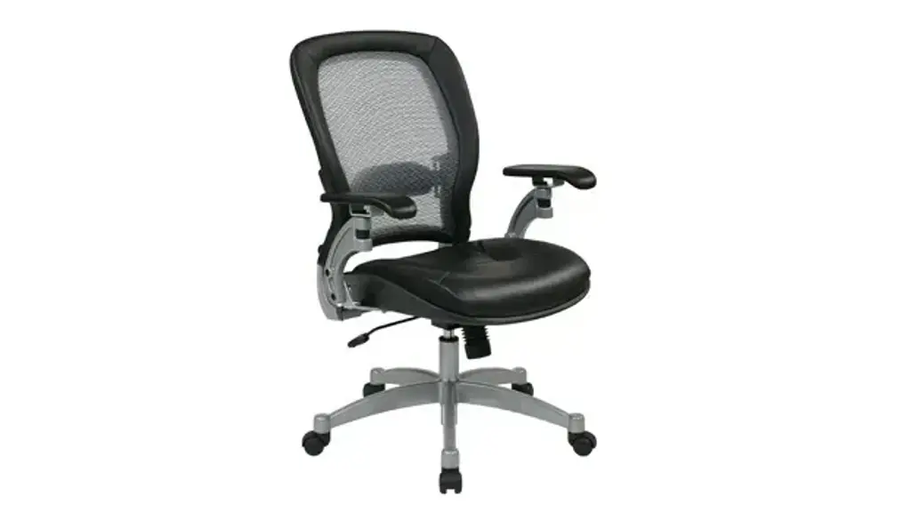 This chair is all about comfort and style. The padded leather trim mesh back office chair enjoys a deluxe 2-to-1 mid pivot knee tilt offering no rise to the seat when reclining. Also has Gunmetal finish base with oversized dual wheel carpet casters. Includes adjustable lumbar support and adjustable arms. Ships ready for easy assembly.