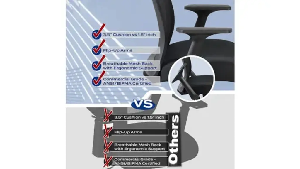 Regency’s Squire commercial-grade chair stands out from the crowd, offering ANSI/BIFMA approval that sets it apart from low-quality alternatives. Exceptional value without compromising on quality. The star of the show is our breathable mesh back, keeping you cool and comfortable throughout your workday. No more stuffy, sweaty office sessions! Paired with this is our innovative flip-up arm design, providing unmatched adaptability for your office setup. Need to slide closer to your desk? Simply flip up the arms and you're good to go!Built to last, our chair boasts a heavy-duty base and thick density seat cushion, supporting up to 250 lbs with ease. Glide effortlessly across your office with durable nylon casters that work well on any surface. This isn't just a chair; it's an investment in your comfort and productivity. Overall Dimensions: 26.5" W x 21" D x 36-39.5" H. Ships ready for easy assembly.