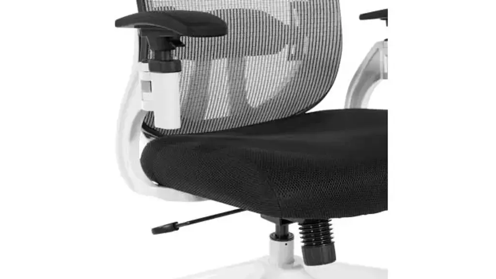 White Vertical Mesh High Back Chair with Height Adjustable Lumbar Support, Linen Fabric Seat, Height Adjustable Padded Arms, and White Angled Nylon Base. Chair rotates 360 Degrees. Choose from a variety of Linen Fabric Seat Colors. Features: Pneumatic Seat Height Adjustment, 2 -to -1 Synchro Tilt, Tilt Tension, Tilt Lock and Seat Slider. Overall Dimensions: 29.25" W x 25.25" D x 39.5-43.75" H. Seat: 21" W x 18.75" D Back: 19.5" W x 22.5" H Arms to Floor: 26.75" Ships ready for easy assembly.