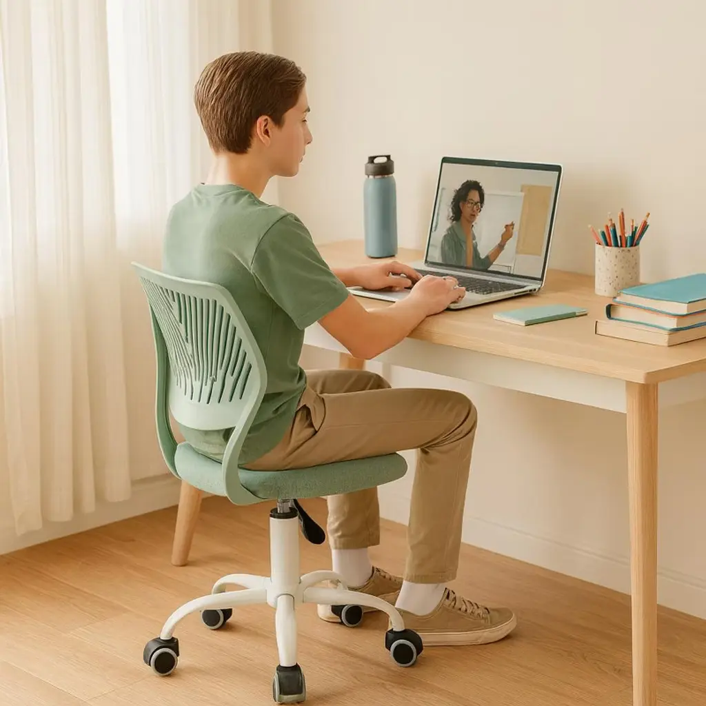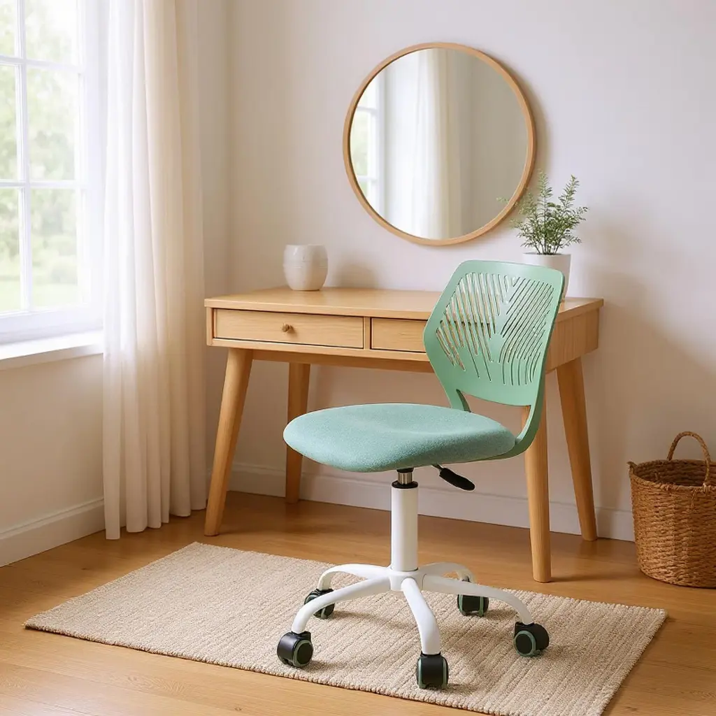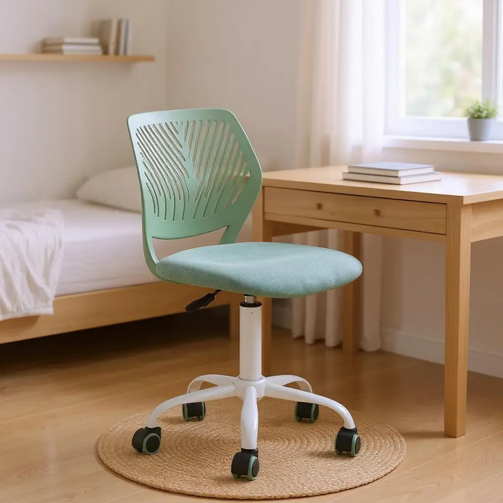 Create a comfortable and stylish workspace with the Homy Casa Adjustable Swivel Study Chair. Designed with a breathable cut-out backrest, padded seat, and smooth-rolling wheels, it offers ergonomic comfort for homework, crafts, or office tasks. The seat height adjusts from 17.7" to 22.4", making it versatile for growing kids, teens, or compact study spaces. Lightweight yet durable, this armless chair fits easily under desks and is perfect for bedrooms, dorms, or home offices.