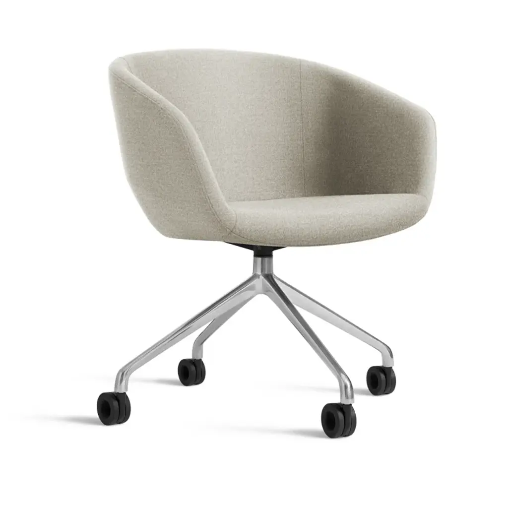 Power through assignments and read with ease inside the cozy interior of the Host Task Chair from Blu Dot. It’s a piece using technology the automotive industry harnesses for making their high-performance seats. It shares similarities with a high-performance car seat, starting from its wrapping bucket design. Giving off a sculpted look, the bucket design receives an application of padding for dreamy comfort. Artisans upholster it with polyester, giving the seat a softness that caresses the body. If something requires your attention across the room, this chair glides across the floor with caster wheels. An aluminum base fits them together with a high-style quality.