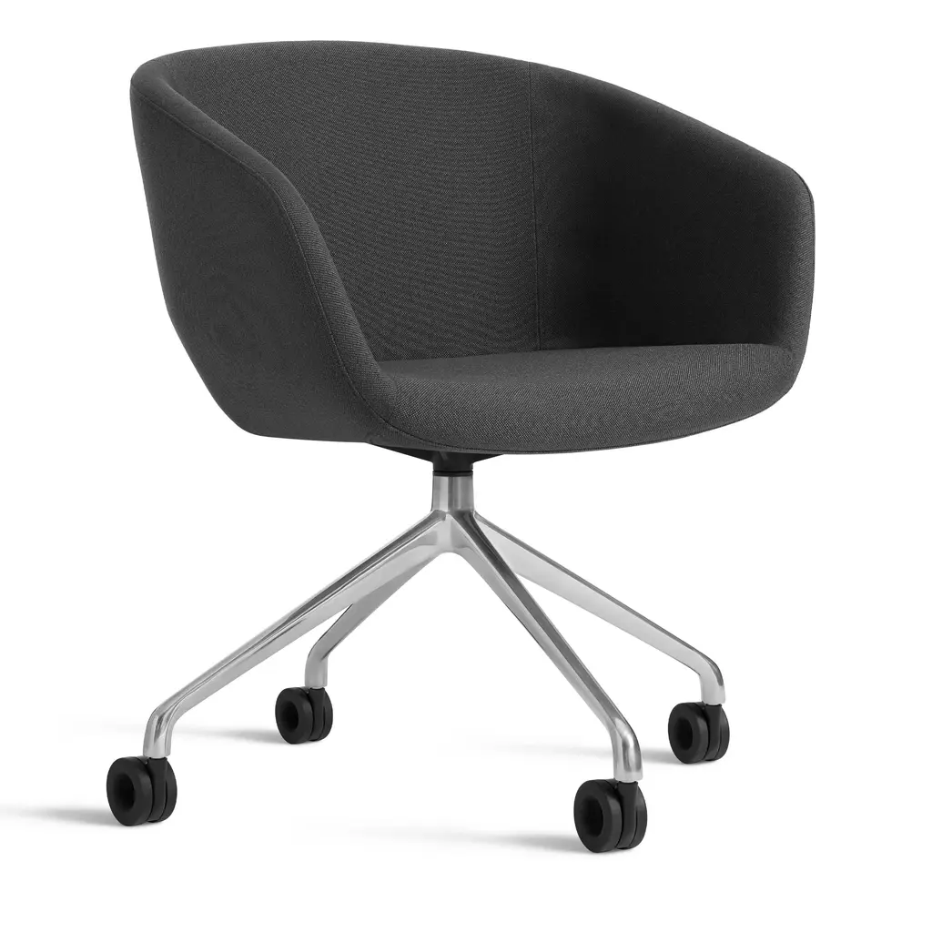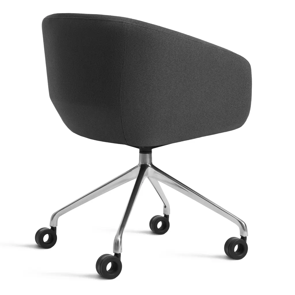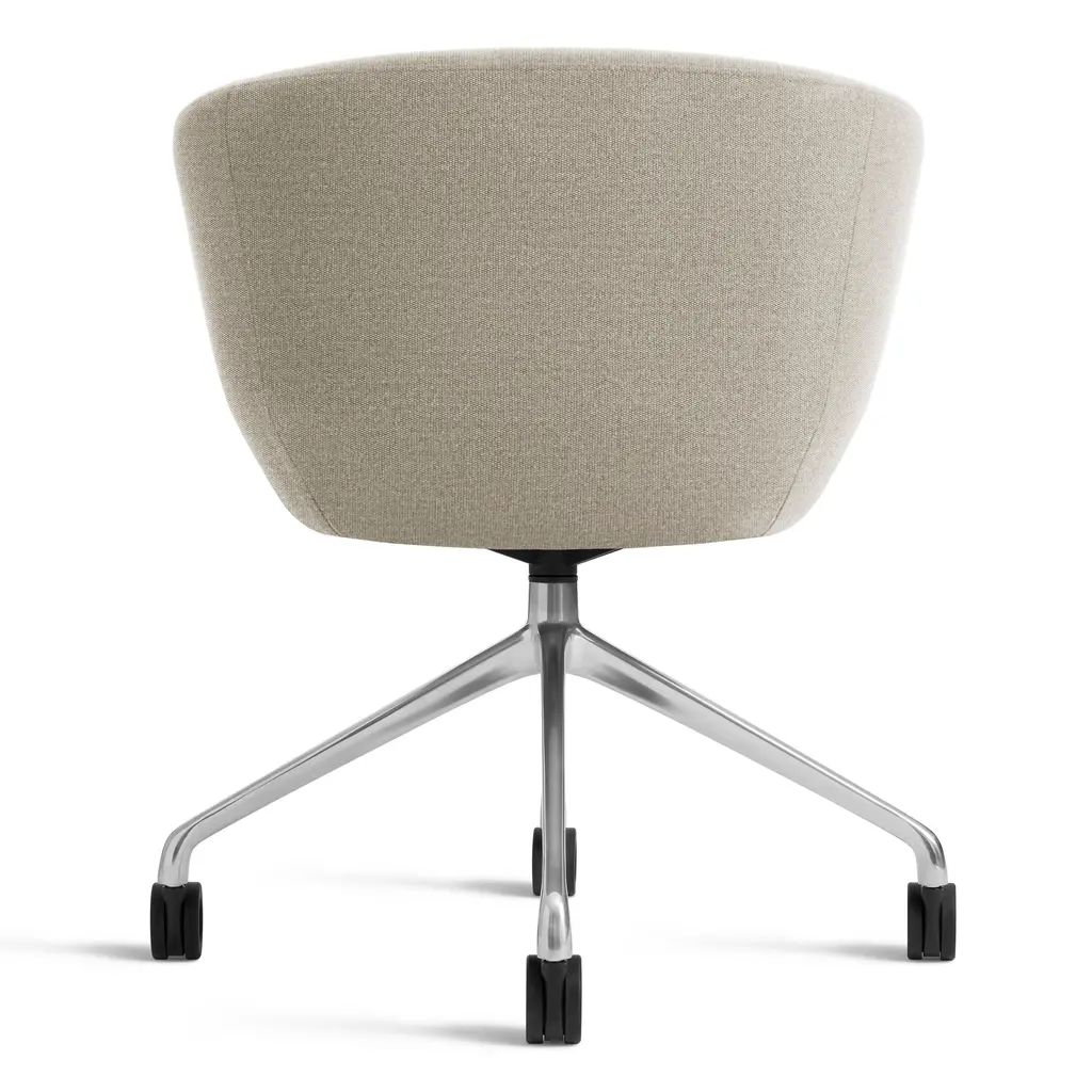 Like a boss. Graceful contours tuned proportions and an aluminum base make for one heck of a power pose. A fully-upholstered back and well-padded bucket seat eliminate discomfort and bring harmony to your home office. Soft facet back detail adds a satisfying bit of office drama. Features