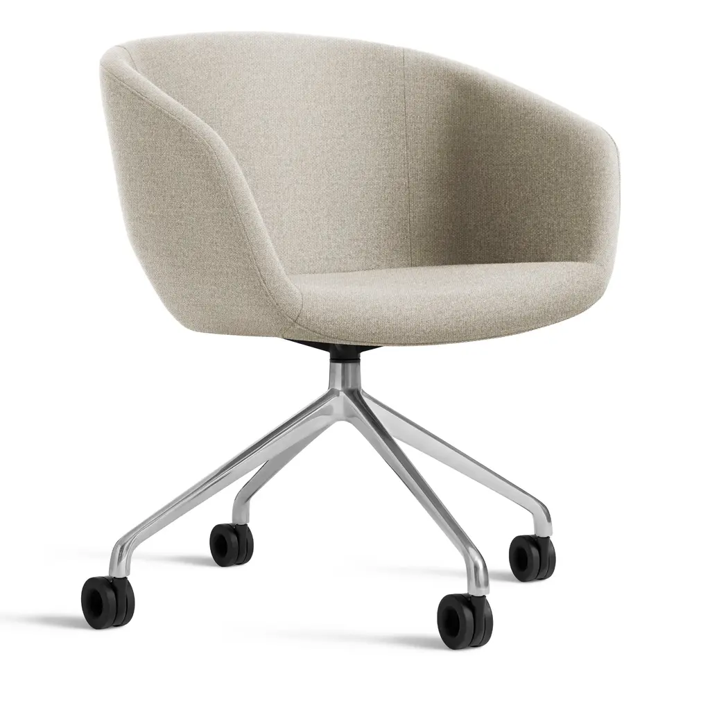Like a boss. Graceful contours tuned proportions and an aluminum base make for one heck of a power pose. A fully-upholstered back and well-padded bucket seat eliminate discomfort and bring harmony to your home office. Soft facet back detail adds a satisfying bit of office drama. Features