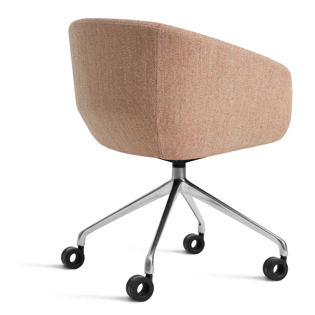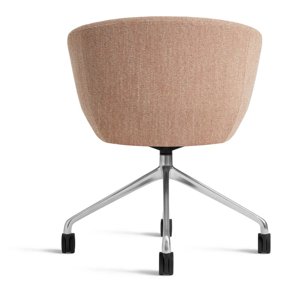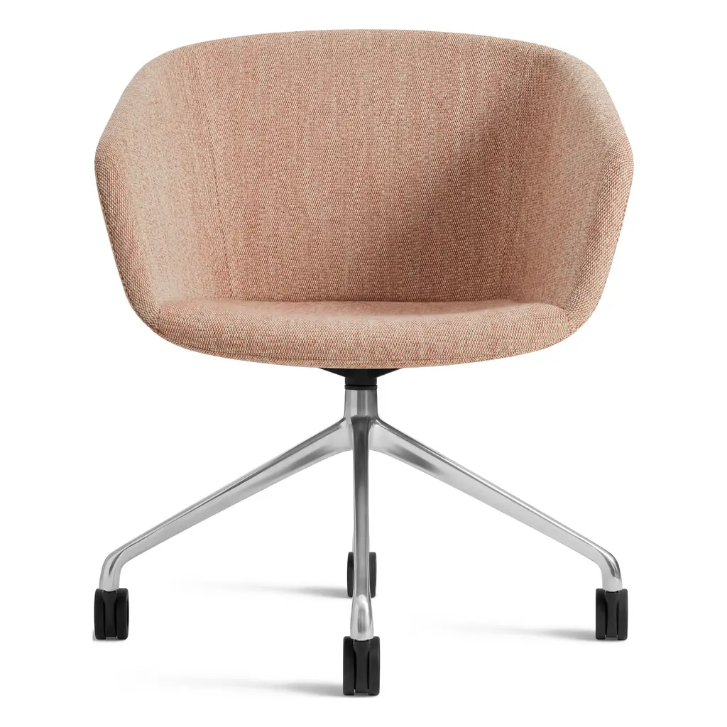Graceful contours, tuned proportions and an aluminum base make for one heck of a power pose. A fully-upholstered back and well-padded bucket seat eliminate discomfort and bring harmony to your home office. Soft facet back detail adds a satisfying bit of office drama.