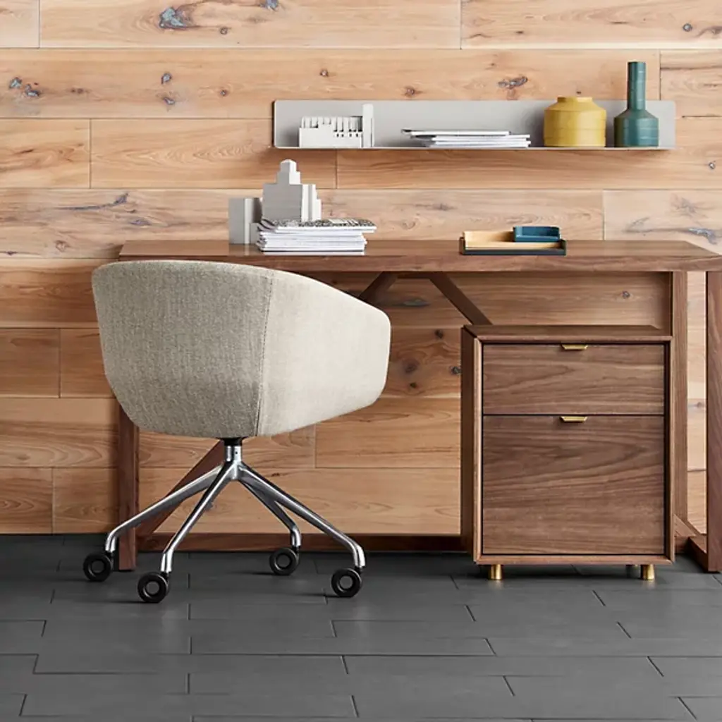 Power through assignments and read with ease inside the cozy interior of the Host Task Chair from Blu Dot. It’s a piece using technology the automotive industry harnesses for making their high-performance seats. It shares similarities with a high-performance car seat, starting from its wrapping bucket design. Giving off a sculpted look, the bucket design receives an application of padding for dreamy comfort. Artisans upholster it with polyester, giving the seat a softness that caresses the body. If something requires your attention across the room, this chair glides across the floor with caster wheels. An aluminum base fits them together with a high-style quality.