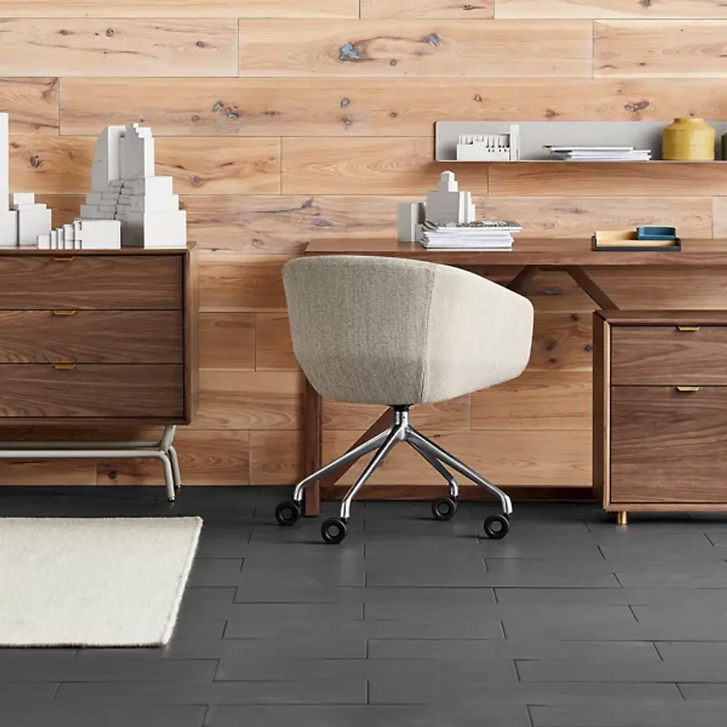Power through assignments and read with ease inside the cozy interior of the Host Task Chair from Blu Dot. It’s a piece using technology the automotive industry harnesses for making their high-performance seats. It shares similarities with a high-performance car seat, starting from its wrapping bucket design. Giving off a sculpted look, the bucket design receives an application of padding for dreamy comfort. Artisans upholster it with polyester, giving the seat a softness that caresses the body. If something requires your attention across the room, this chair glides across the floor with caster wheels. An aluminum base fits them together with a high-style quality.