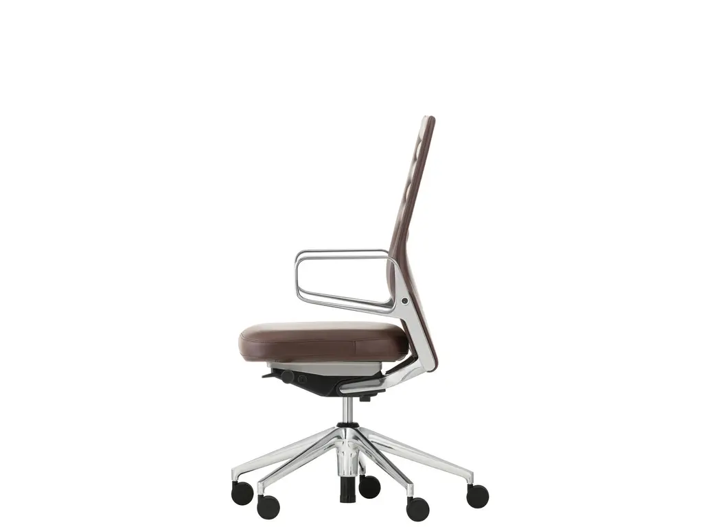The high backrest of ID Soft L comes with padded upholstery for excellent comfort. Although the chair exudes elegant sophistication, its sleek lines and minimal design also lend it an understated character. ID Soft L can be harmoniously combined with other chairs and is a perfect addition to many different settings.Material description- Office swivel chair with 2D or 3D armrests in accordance with EN 1335, Ergonomic Seal of Approval (LGA Nuremberg).- Seat mechanism: FlowMotion mechanism, lockable in upright sitting position. Seat mechanism matches the frame colour (basic dark or soft grey). Optionally with or without synchronous forward tilt (can be disabled) or seat depth adjustment. Individual adjustment of backrest resistance and forward tilt.- Backrest: height-adjustable high backrest in polyamide (basic dark or soft grey) with padded cushion in polyurethane foam. Seat cover in woven fabric or 3D spacer fabric.- Armrests: 2D armrests with adjustable height and width or 3D armrests with adjustable height, width and depth and 360° swivel function. Armrest supports in polished aluminium. Armrest sleeves in polyamide are matched to the frame colour (basic dark or soft grey). With polyurethane pads in basic dark (for frames in basic dark) or dim grey (for frames in soft grey). Optionally available with ring armrests in polished die-cast aluminium, with or without height adjustment, for use in conference settings. For height-adjustable ring armrests, armrest supports in polyamide are matched to the frame colour (basic dark or soft grey).- Seat: polyurethane foam upholstery. Optionally available with contoured seat. Seat and back covers in woven fabric or 3D spacer fabric.- Base: five-star base in polyamide (basic dark) or polished die-cast aluminium, equipped with double castors (Ø 60 mm) or glides.- Black gas shock absorbers.The ID Chair Concept is a collection of office swivel chairs that puts all this experience and expertise into practice for the benefit of companies and the people who work for them. The office chair is by far the most important piece of furniture for office workers, as it has a decisive influence on productivity, health and well-being in the workplace. Since individuals spend countless hours sitting at work, they not only expect 'their' chair to keep them healthy and fit, but also to help define their personal sphere within the space of the office.The ID Chair Concept offers countless customisation options to suit individual users. Choices between the precisely adjustable FlowMotion mechanism, various types of backrests, bases and armrests as well as many different colours and upholstery covers make it possible for every individual user and every company to fi nd their 'own' ID Chair. Despite the many possible combinations, it always remains essentially the same chair – bringing advantages both in terms of acquisition and maintenance.