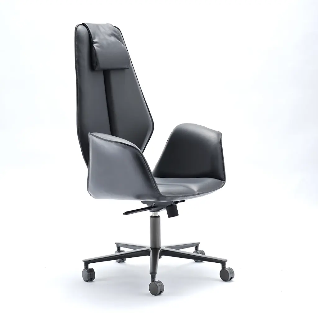 With its compact padding, the backrest of the ID Trim office chair conveys a sense of classic elegance and quality craftsmanship. The sandwich construction with integrated lumbar support provides the comfort of an upholstered backrest while being almost as slim as a mesh backrest – offering an alternative to both of these construction types for office chair backrests. With its high backrest, ID Trim L is an excellent choice for the executive office, offering extra relief from tension in the head and neck.Material description- Office swivel chair with 2D or 3D armrests in accordance with EN 1335, Ergonomic Seal of Approval. The version equipped with the FlowMotion mechanism with forward tilt and seat depth adjustment complies with BS 5459-2 (24-hour test).- Mechanical unit: FlowMotion mechanism, can be locked in the upright sitting position. Mechanical unit matches the frame colour (basic dark or soft grey). Optionally available with or without synchronised forward tilt (can be disengaged) and with or without seat depth adjustment. Individual adjustment of backrest resistance and forward tilt.- Backrest: high backrest with integrated, height-adjustable headrest. Backrest frame in polyamide (basic dark or soft grey). Optional height-adjustable lumbar cushion. Upholstery cover in fabric or leather. Headrest for leather upholstery in the corresponding leather colour; for fabric upholstery, headrest covered in dim grey leather or nero leather.- Armrests: 2D armrests with adjustable height and width or 3D armrests with adjustable height, width and depth and 360° swivel function. Armrest supports in polished aluminium. Armrest sleeves in polyamide matched to the frame colour (basic dark or soft grey). With polyurethane pads in basic dark (for frames in basic dark) or dim grey (for frames in soft grey). Optionally available with ring armrests in polished die-cast aluminium, with or without height adjustment, for use in conference areas. For height-adjustable ring armrests, armrest supports in polyamide are matched to the frame colour (basic dark or soft grey).- Seat: polyurethane foam upholstery. Optionally available with contoured seat. Seat and back covers in fabric or leather. Leather covers are not recommended for chairs with forward tilt, since a leather surface might cause users to slide off the seat.- Base: five-star base in polyamide (basic dark) or polished die-cast aluminium, equipped with double castors (Ø 60 mm) or glides.- Black gas shock absorbers.The ID Chair Concept is a collection of office swivel chairs that puts all this experience and expertise into practice for the benefit of companies and the people who work for them. The office chair is by far the most important piece of furniture for office workers, as it has a decisive influence on productivity, health and well-being in the workplace. Since individuals spend countless hours sitting at work, they not only expect 'their' chair to keep them healthy and fit, but also to help define their personal sphere within the space of the office.The ID Chair Concept offers countless customisation options to suit individual users. Choices between the precisely adjustable FlowMotion mechanism, various types of backrests, bases and armrests as well as many different colours and upholstery covers make it possible for every individual user and every company to fi nd their 'own' ID Chair. Despite the many possible combinations, it always remains essentially the same chair – bringing advantages both in terms of acquisition and maintenance.