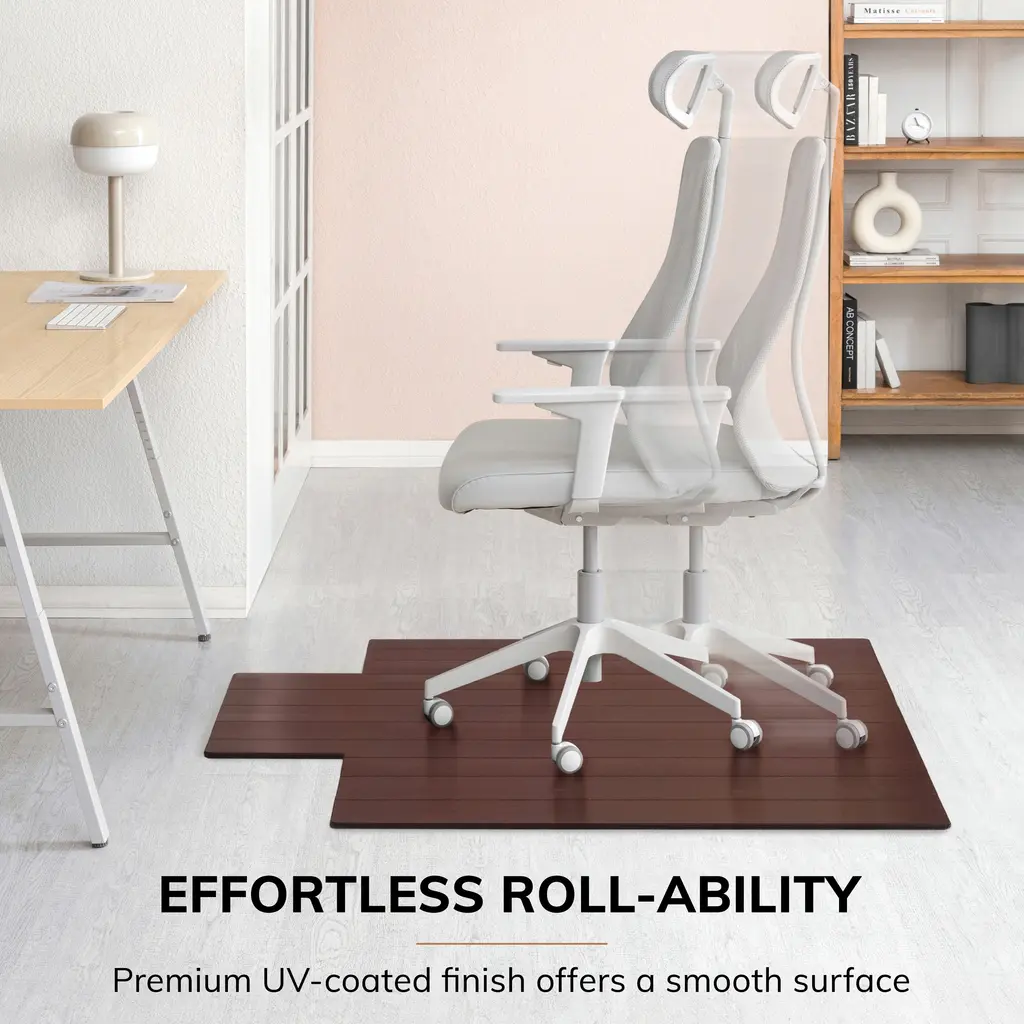 Jani Eco Deluxe Dark Cherry Bamboo Chair Mat With Lip - (44 X 52), Durable Eco-Friendly Chair Mat - Brown