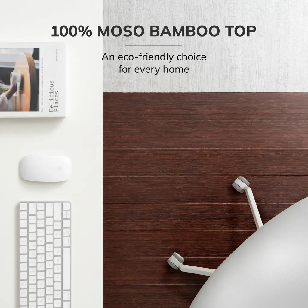 Enhance your workspace with the Jani Eco Deluxe Dark Cherry Bamboo Chair Mat with Lip (44 x 52), designed to improve the movement of your office chair while adding a touch of elegance to your space. The rich dark cherry color enriches the look of your office, and the 100% Moso bamboo material ensures durability and sustainability.