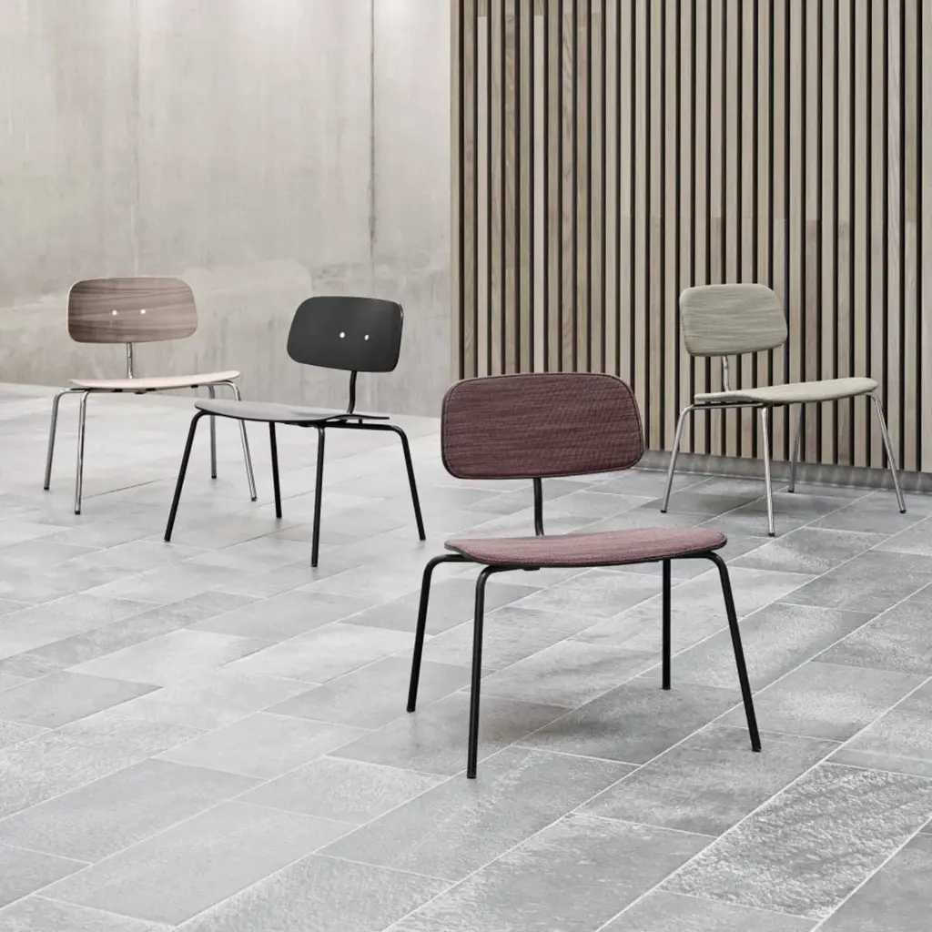 In an lounge chair version, the signature seating from Copenhagen modernist brand Engelbrechts features fully upholstered seat and backrest contours. Kevi’s slender tubular-steel frame proves a complementary pairing in a choice of polished chrome or matte black powder coat. With high quality fabric and leather options to chose from and generously expanded dimensions, it’s a luxuriously relaxed upgrade on designer Jørgen Rasmussen’s original office chair.