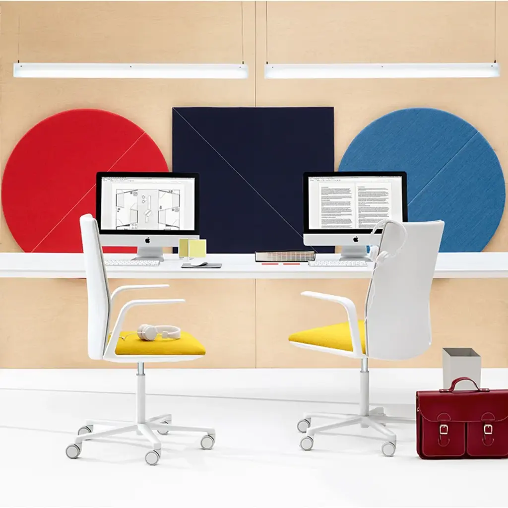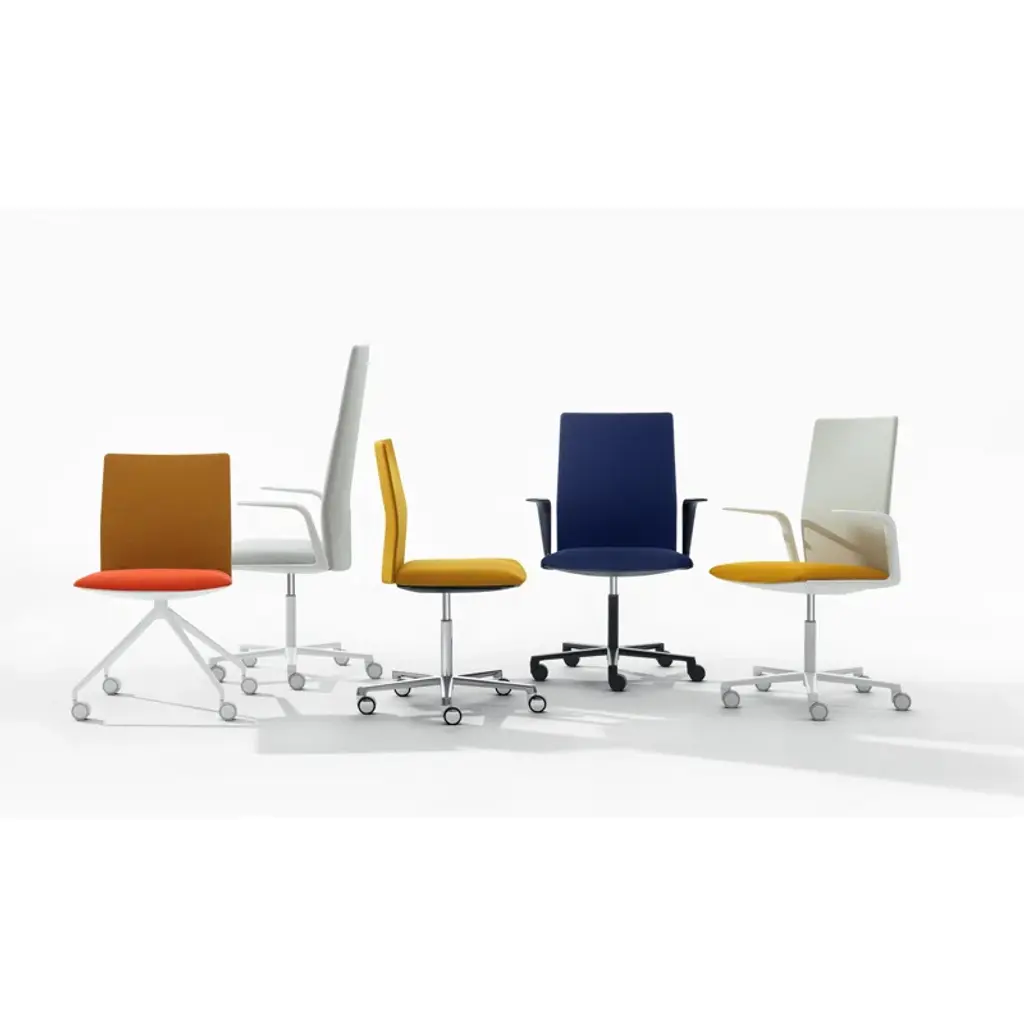 This is Arper’s first office chair that is one-hundred-percent compliant with regulatory requirements. Light and minimal in design, the chair features built-in mechanisms hidden discreetly under the seat. An invisible, adjustable lumbar support is concealed within the backrest’s thin frame to give additional flexibility and comfort.