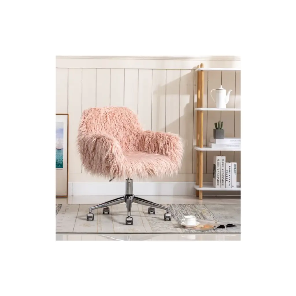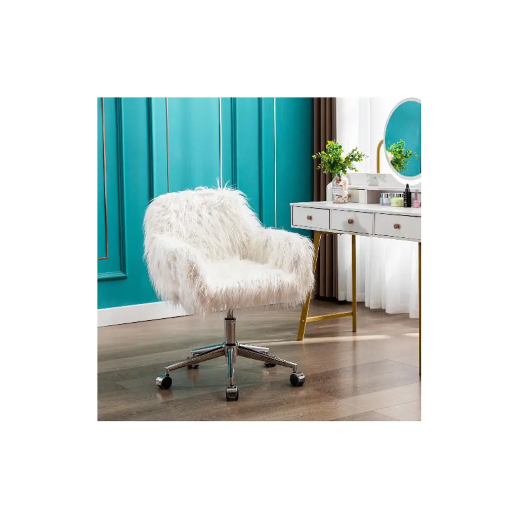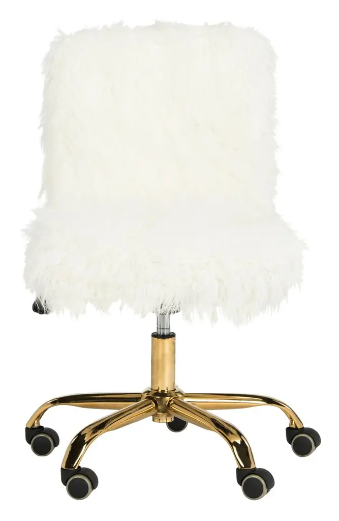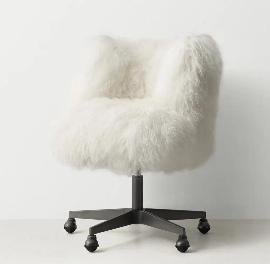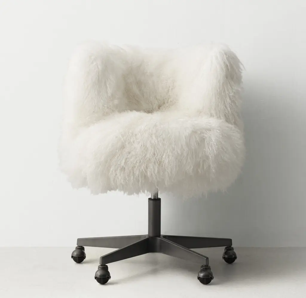 Luxurious Mongolian fur upholstery makes it fun to get things done, surrounding you with plush comfort while you tackle the task at hand. A sturdy iron base and rolling casters help ensure it gets finished.