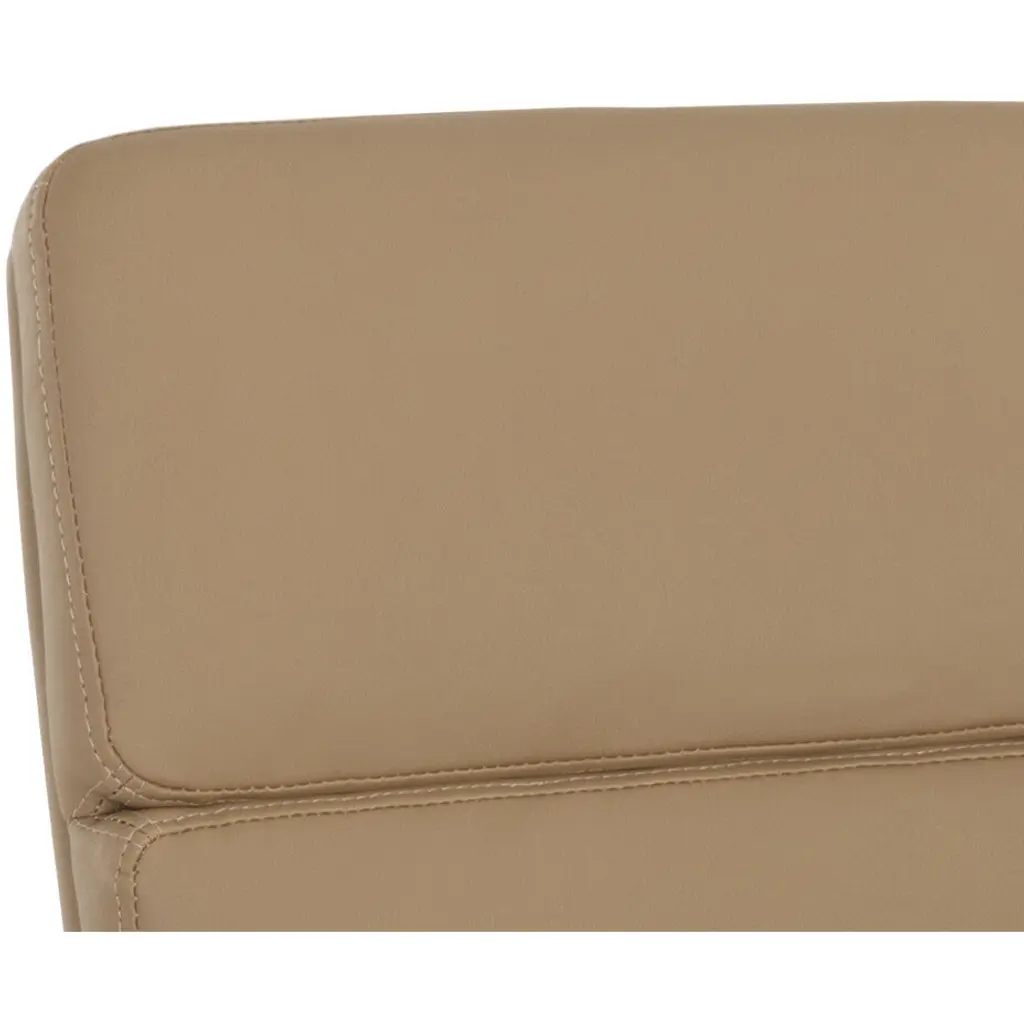 Create a stylish and functional workspace with this stunning modern office chair. Stocked in tan faux leather and features generously padded seating for optimal comfort. Completed with castors for added mobility and a gold stainless steel frame. Handle With Care: This design has been crafted with faux leather. Faux leather is manufactured to reflect the natural characteristics of leather as such, colour variations, markings wrinkles, grooves, and light scratches are appreciated characteristics. No two pieces will be alike. Visit our Product Care page for more information on how to ensure the lasting beauty of this piece.