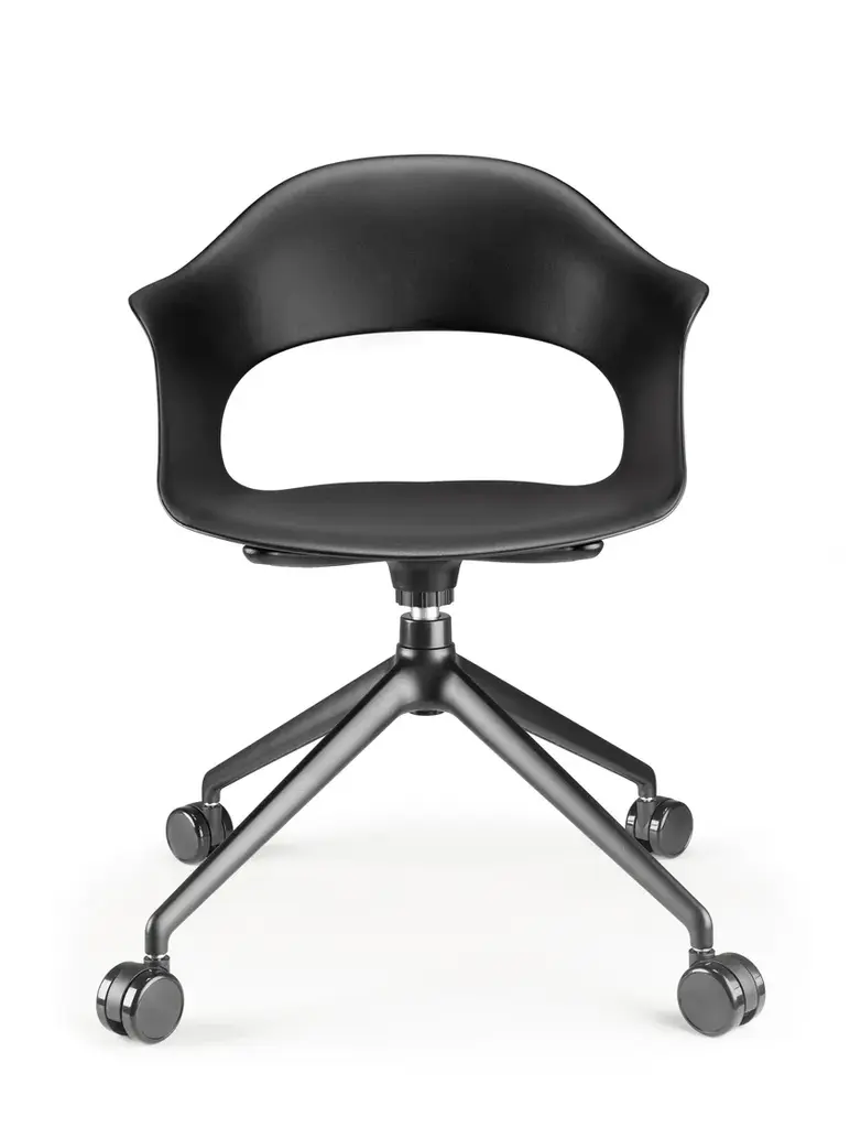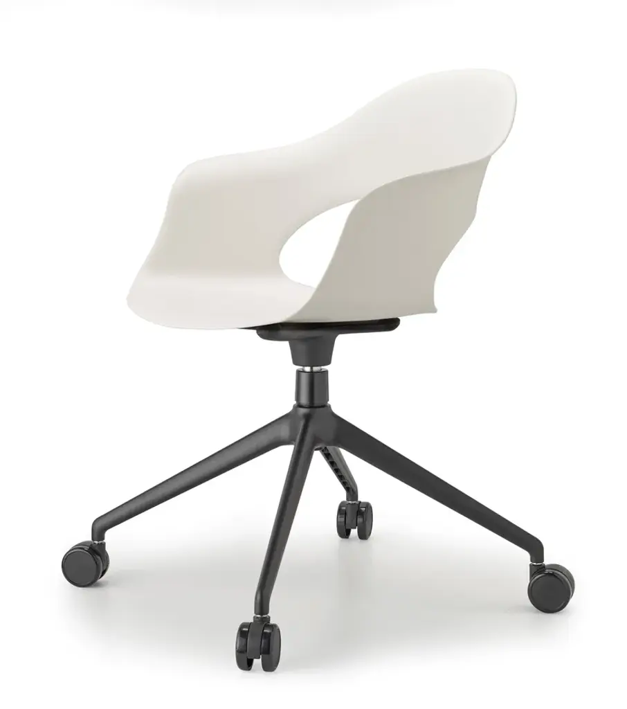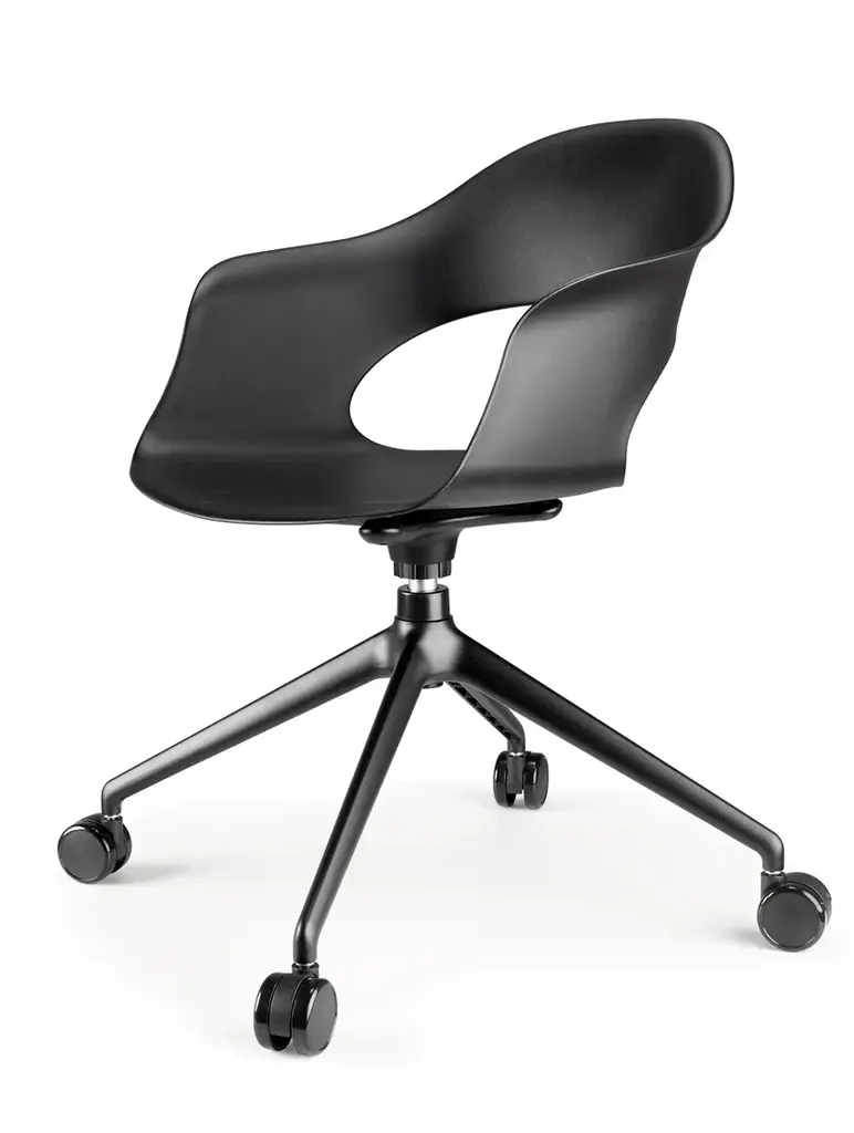 LADY B is a chair with a 4-star swivel structure with die-cast aluminum wheels and a technopolymer shell.Particularly suitable for home office solutions, it is Lady B with four-spoke frame with or without wheels, which envelops in elegance and comfort those who are just passing by for a meeting and those who remain seated for the whole day. The wide range of colours allows you to customize the environment according to your style.