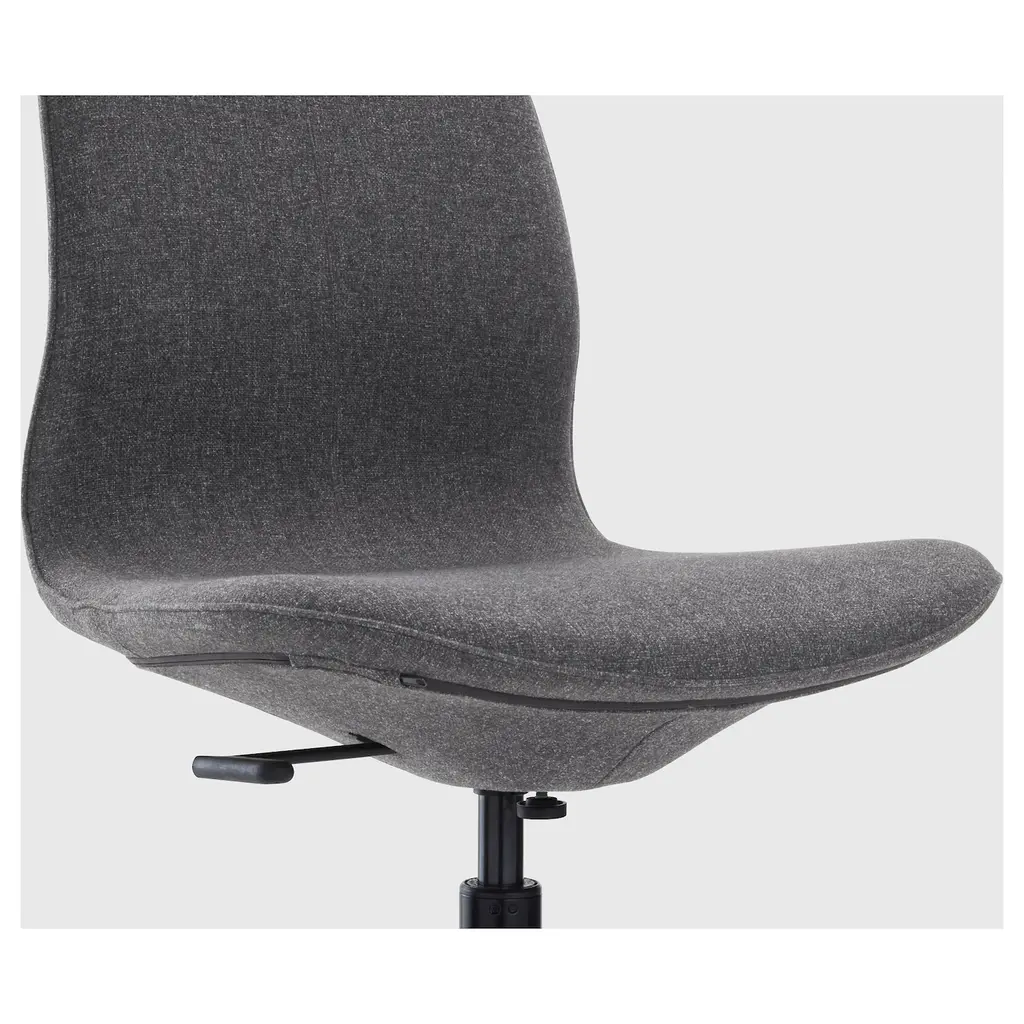 LÅNGFJÄLL Conference chair - Gunnared dark gray/black. You can lean back with perfect balance, as the tilt tension mechanism is easy to adjust with an Allen key to suit your weight and movements. Your back gets support and extra relief from the built-in lumbar support.